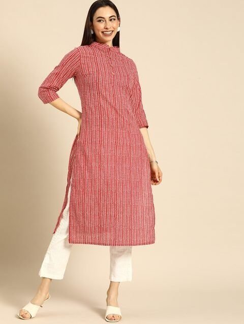 anayna Women Pink & Magenta Printed Strappy Straight Kurta