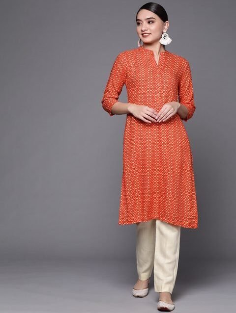 AHIKA Women Orange & Pink Digital Print Straight Kurta