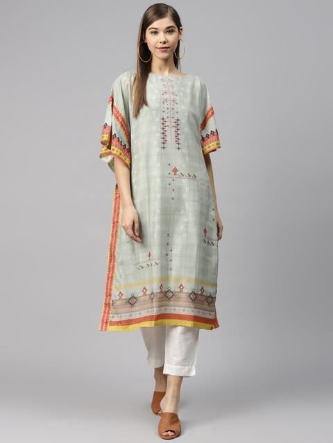 Biba Women Sea Green & Orange Printed Kaftan Kurta