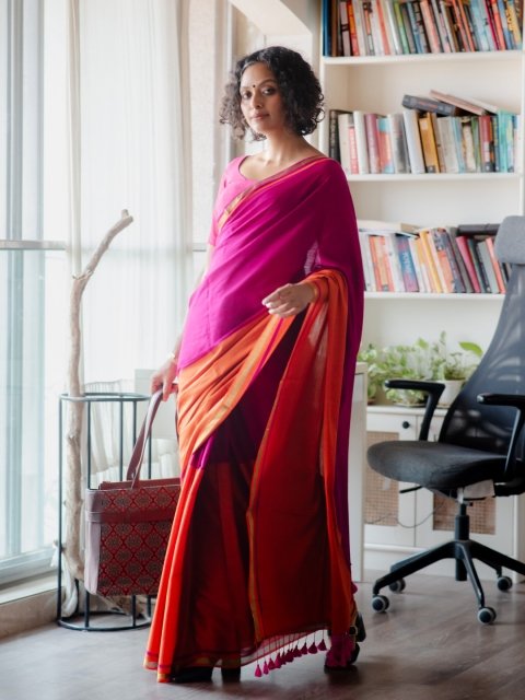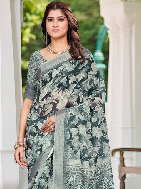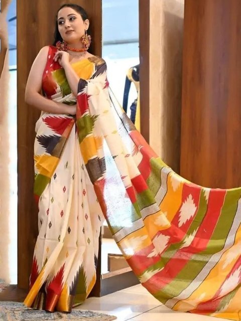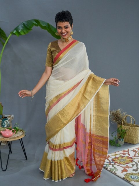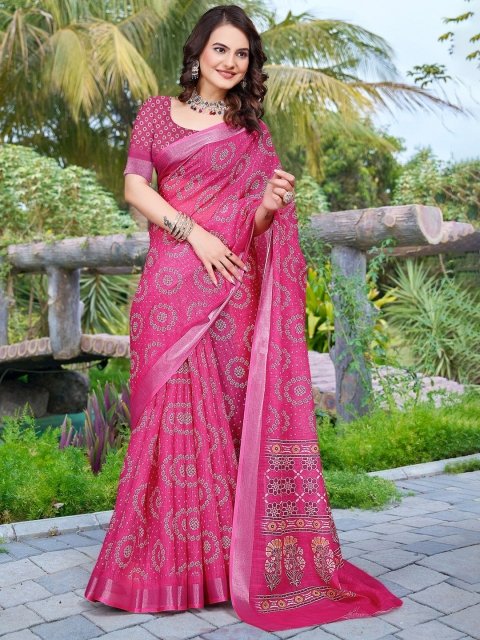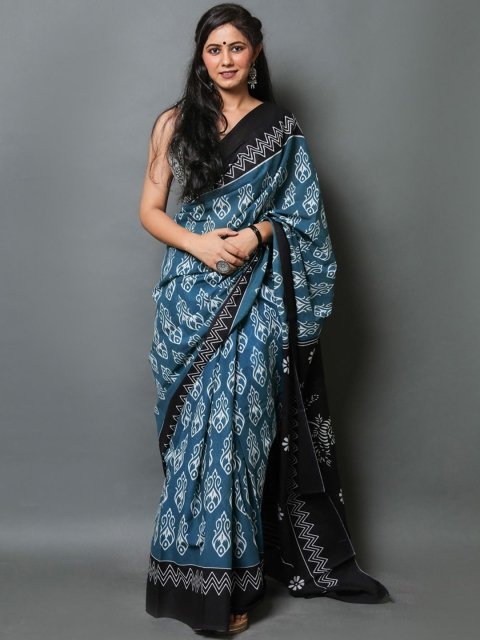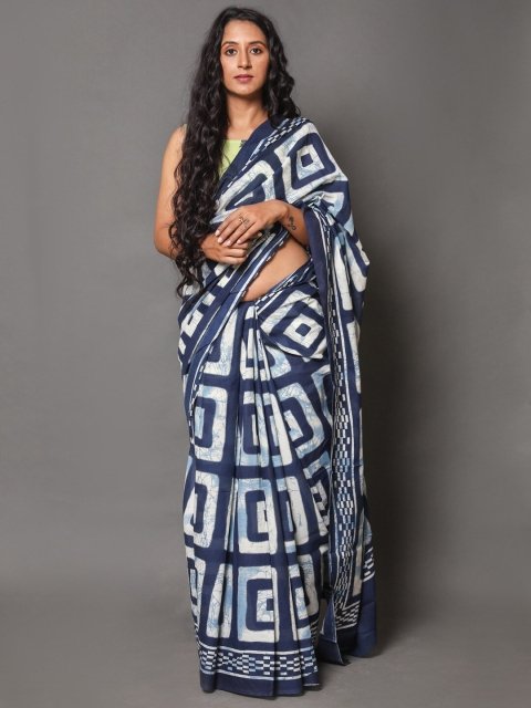 Mandara Ethnic Motifs Pure Cotton Block Print Saree