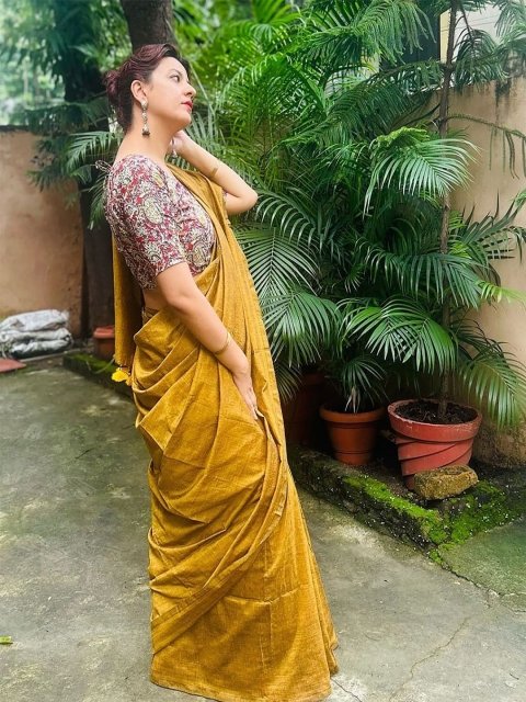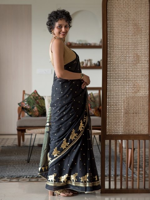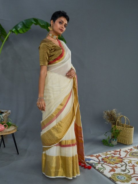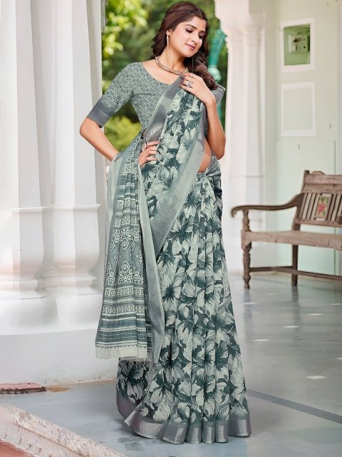 Mandara Ethnic Motifs Pure Cotton Block Print Saree