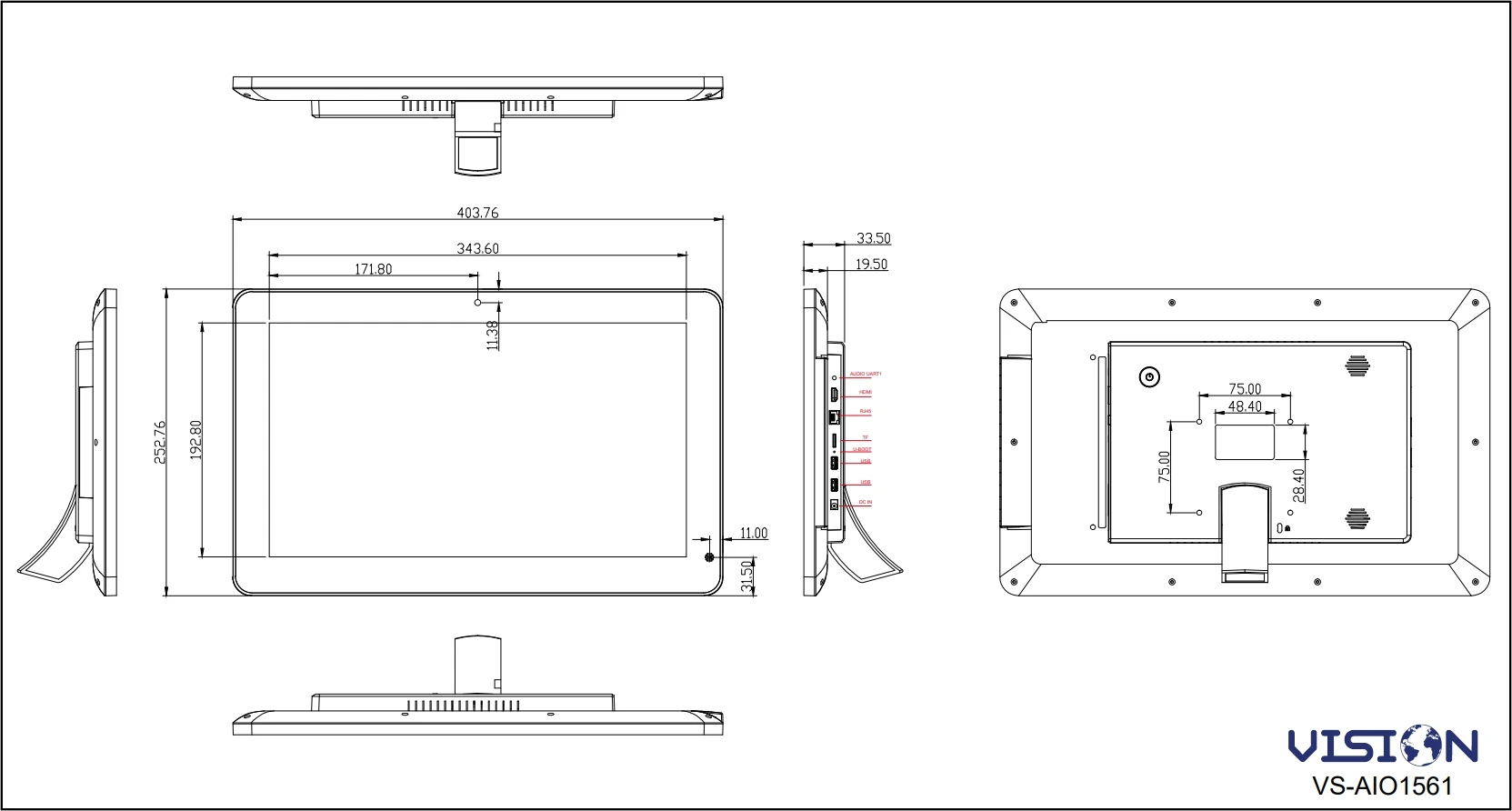 15.6Inches Rk3566 2+16Gb Touch Screen Display Android Monitor Tablet 15 Inch