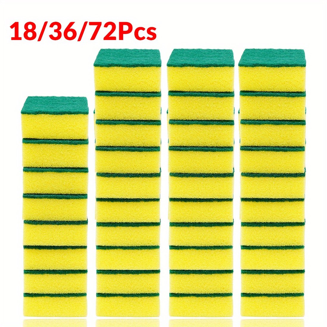 18/36/72pcs Commercial-Grade Kitchen Sponge- Multi-Function, Super Absorbent, Rust& Grease Remover With Double-Layer Grip, Ideal For Restaurants, Homes: Tableware, Cookware& Furniture-vacuum Package