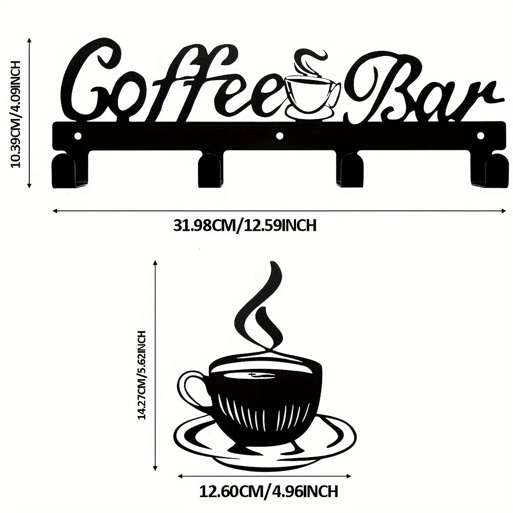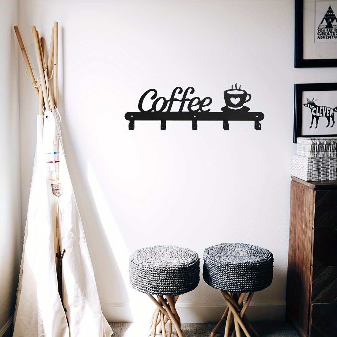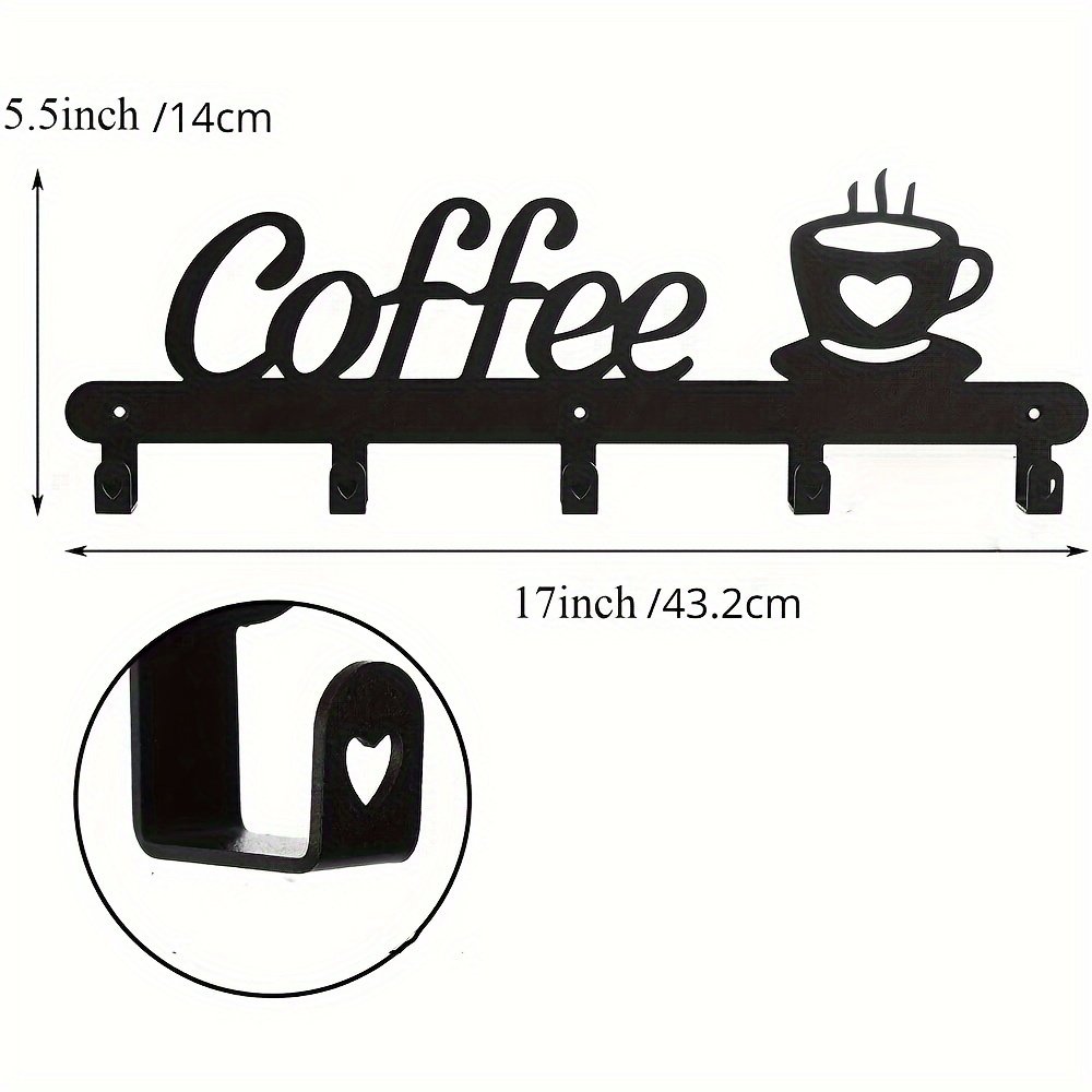 1pc Classic Metal Coffee Cup Holder, 5 Hooks Wall Mount, Hanging Cup Storage Organizer with Coffee Logo, Decorative Kitchen Display Rack, HELLOYOUNG Brand, Home & Kitchen Decor Accessories, Utility Hooks