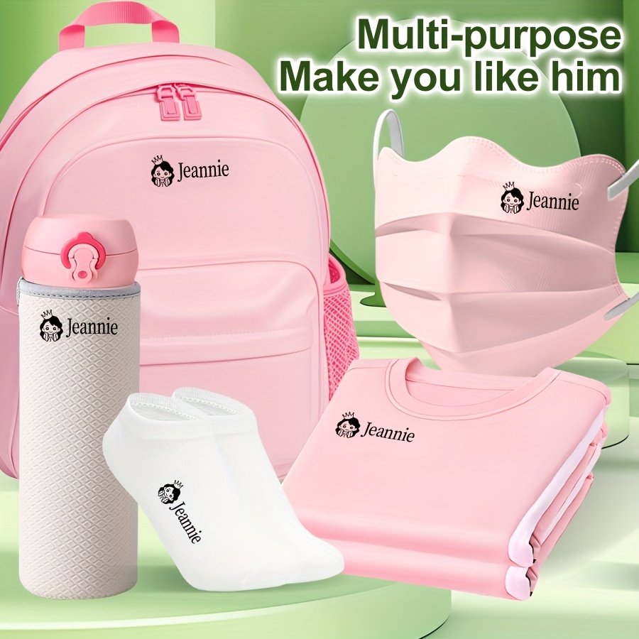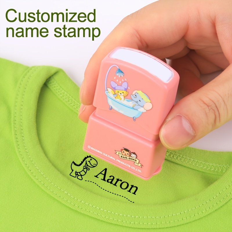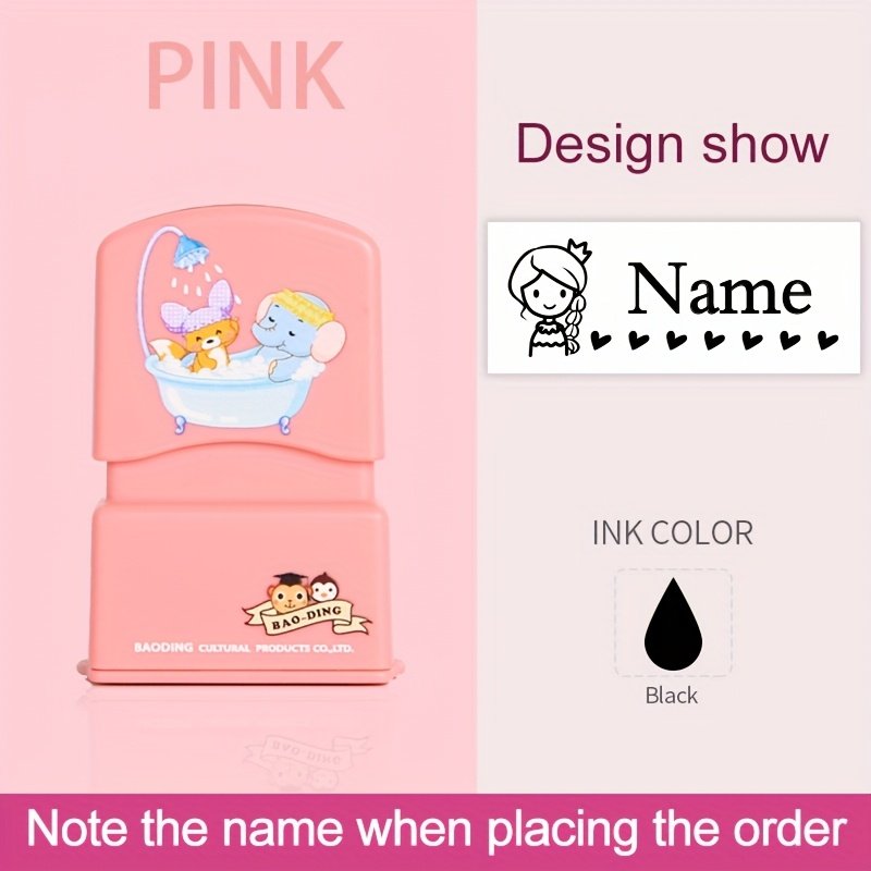 1pc Customized Pink Name Stamp - Waterproof & Non-Fading Personalized Clothing Name Tag with Cute Cartoon Animals & Playful Fonts for Kids, Babies, Students - Kindergarten, Daycare, School Supplies, Kindergarten Essentials, Playful Design, Customizable Te