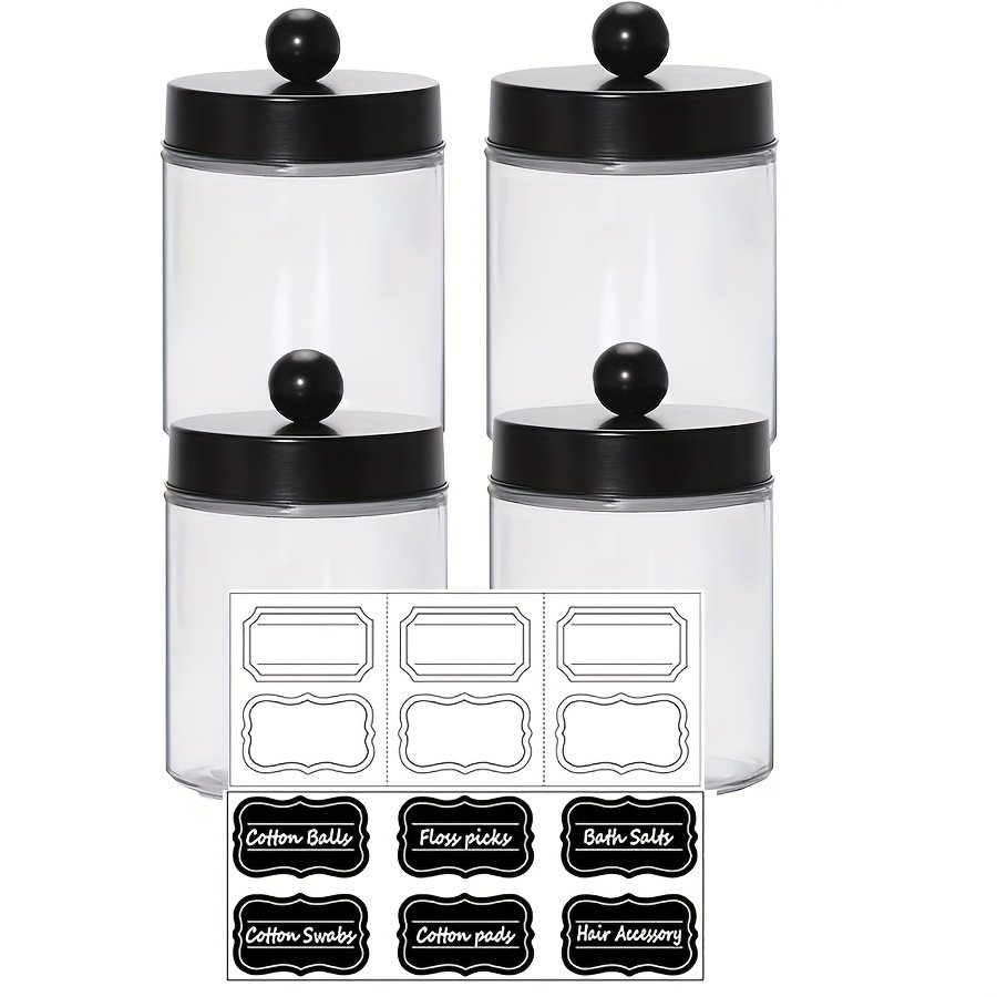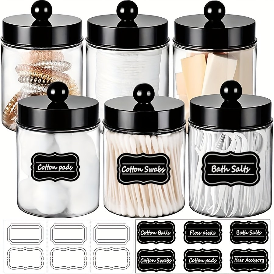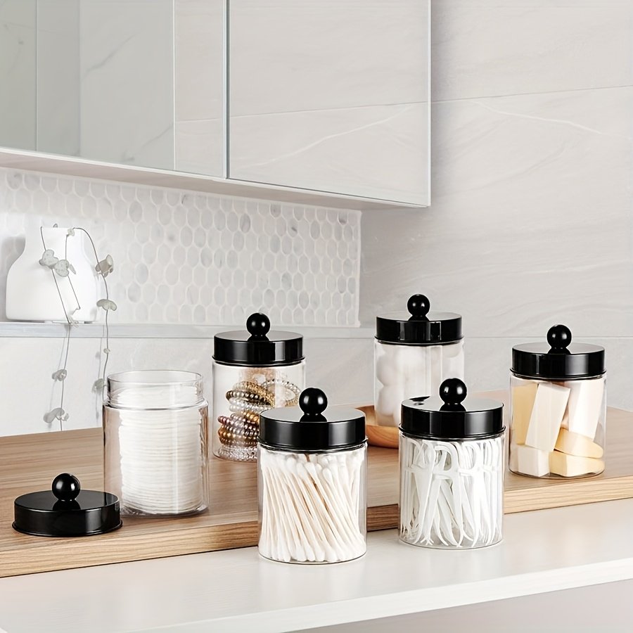 2/4/6pcs Cotton Swab, Ball, Pad, Floss, Paper Clip Organizer - Black & White Apothecary Jars with Sleek Lids, Perfect for Bathroom Vanity Storage, Countertop Decor, and Farmhouse Style, Bathroom Storage Solution|Sleek Jar Design|Plastic Construction, Bath