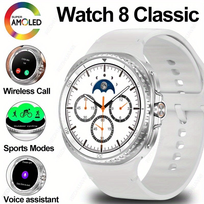 2025 New Original Smart Watch 8 Classic Men's and Women's Fashion Smart Watch, Rotating Dial, Wireless Call, AI GPT Smart Voice Assistant, 1.43-inch/ 1.43inch AMOLED Screen, 300mAh Battery, Step, Calorie, Distance Monitoring, Multiple Sports Modes, 3D Men