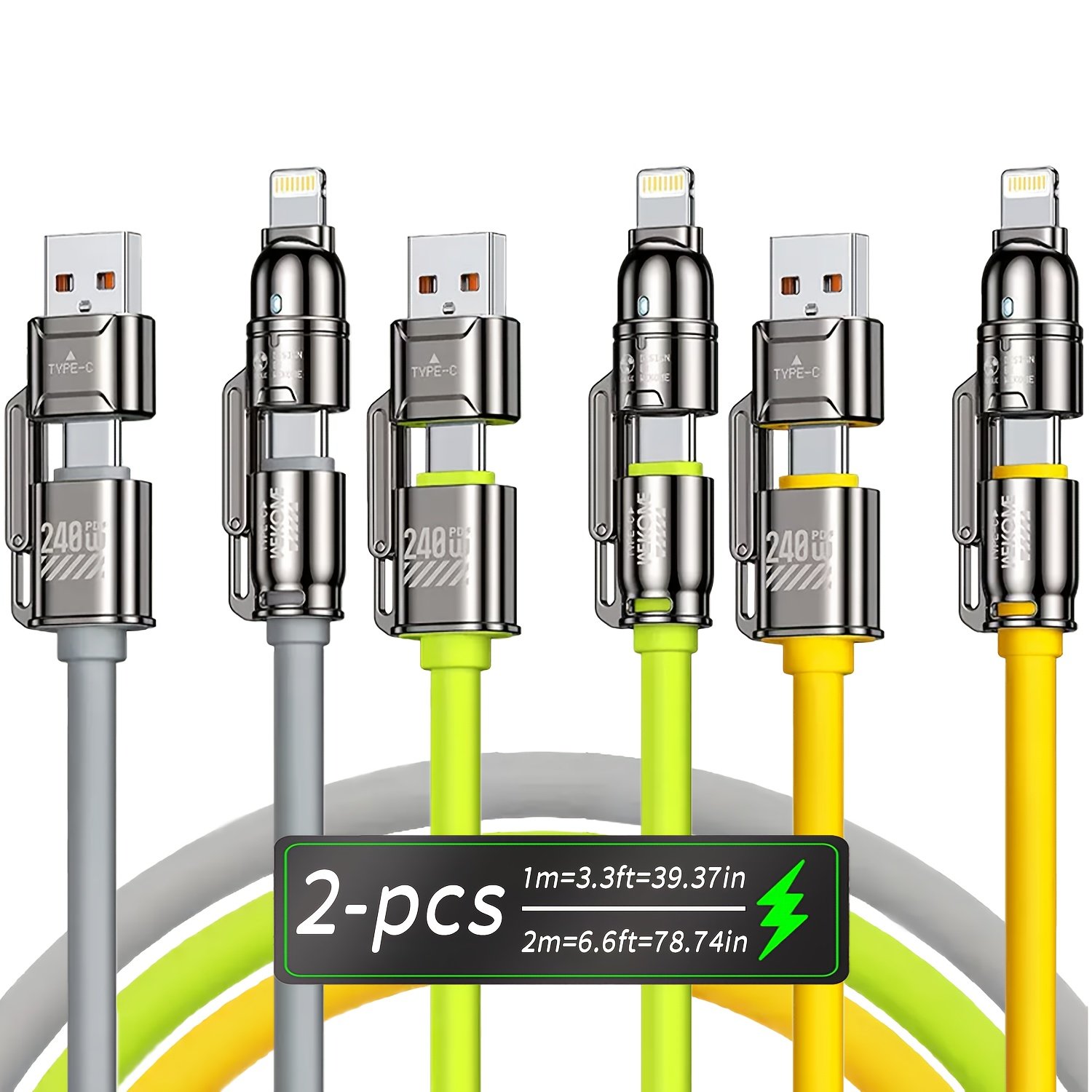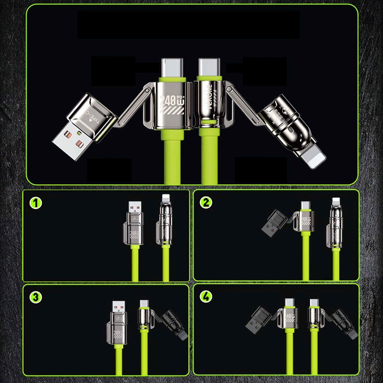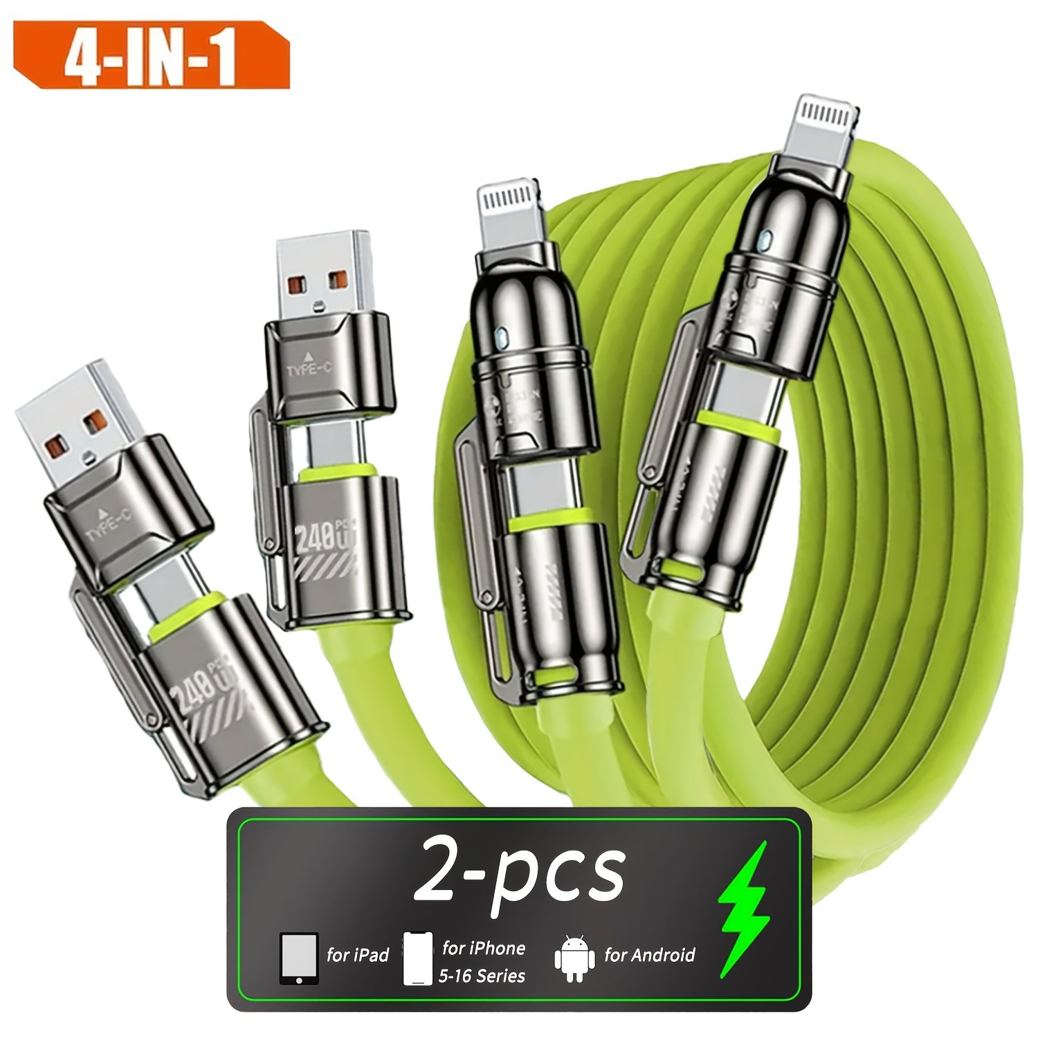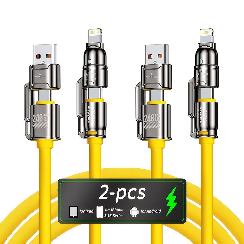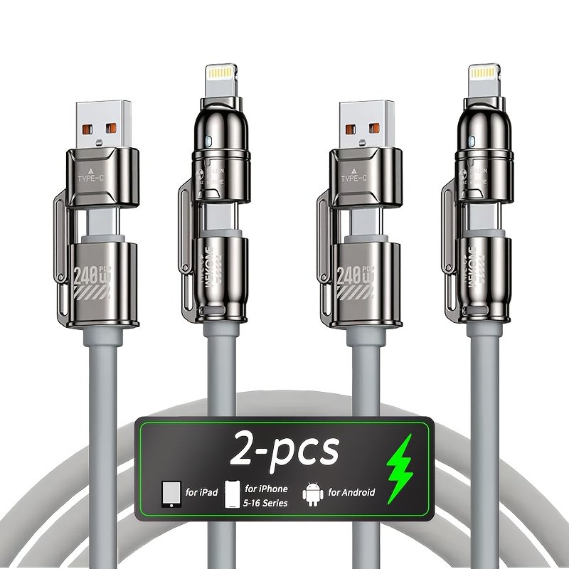 240W Max Super Fast Charging Cable, 4in 1 Multi-Functions Fast Charger Cord Combo with USB-A/Type-C/Lightning Port for iPhone 16/15/14/13/12/11 Pro Max, Quick Charge for Samsung S25/S24/S23+, for LG, Google Pixel, Xiaomi, Tablet and More Devices.