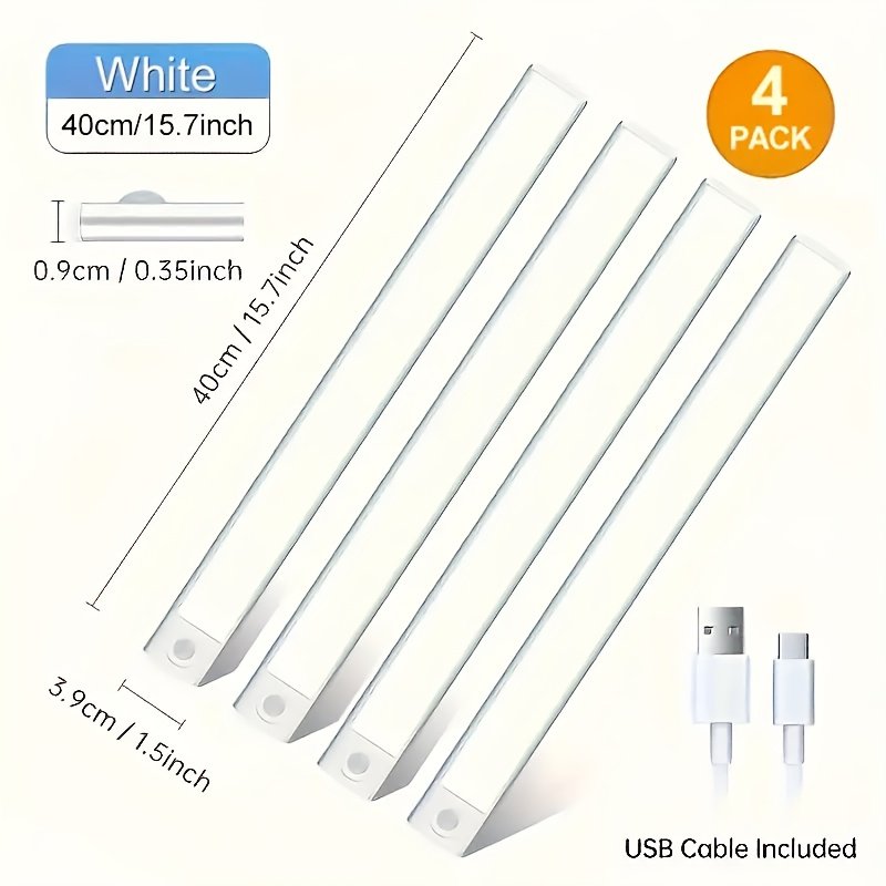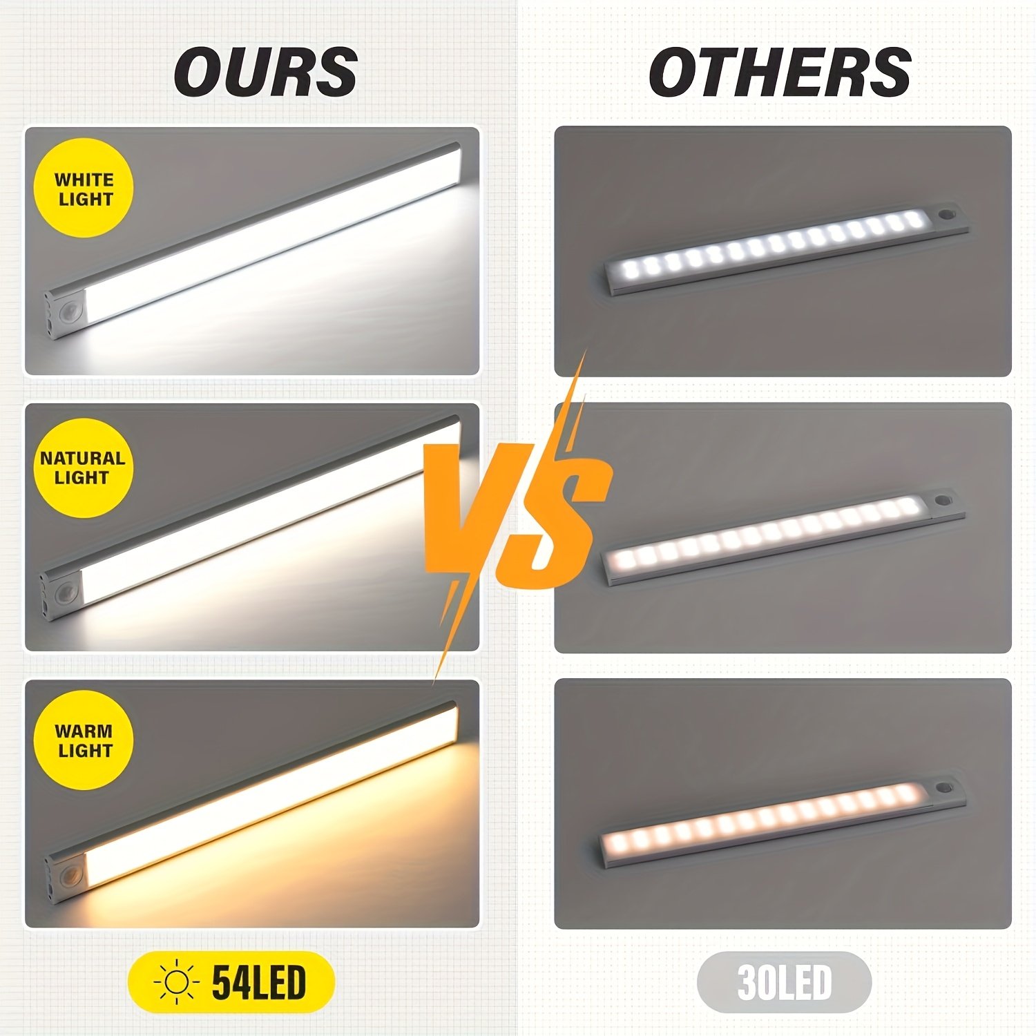 2pcs LED Motion Sensor Under Cabinet Lights, 3 Color Temperatures Wireless USB Rechargeable Night Light, Indoor Closet Lights, Stick-On Anywhere Magnetic Under-Counter Light Fixtures for Kitchen Cabinet Wardrobe Cupboard Stairs. Available In 4pcs.