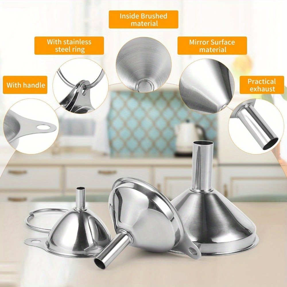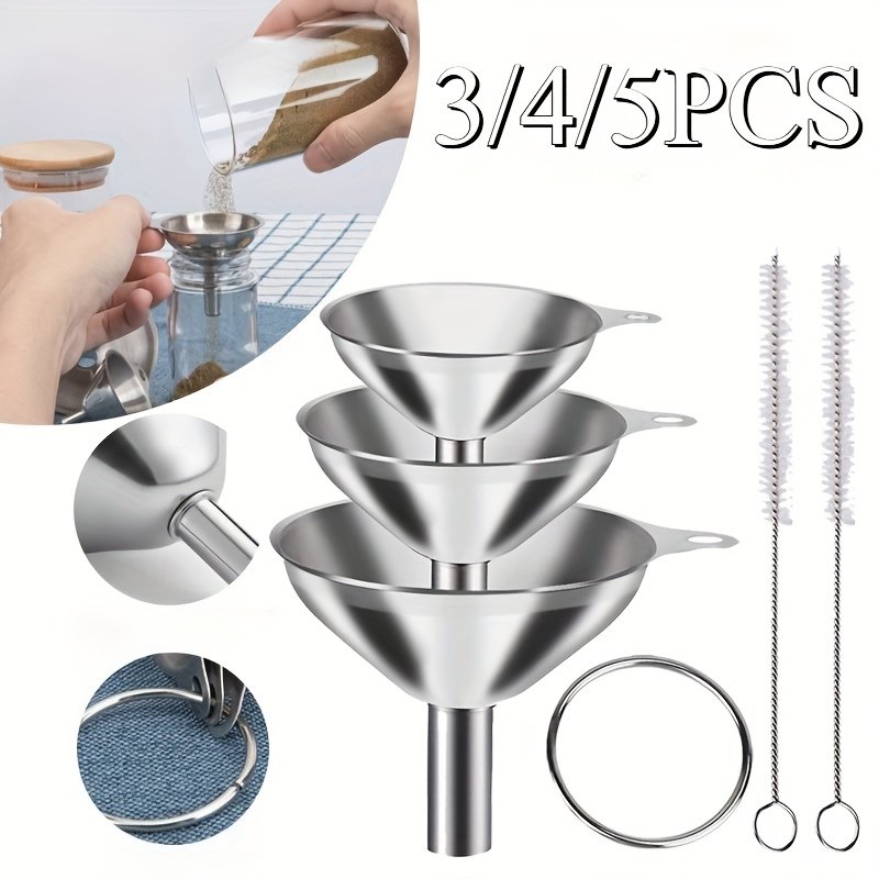 3/4/5pcs Stainless Steel Funnels Set Portable Funnel Mini Hopper Food Grade Metal Funnels for Filling Bottles Small Funnels for Essential Oil Spices Bottles Filler Mouth Funnel Mini Beer Liquid Oil Stainless Steel Funnel Kitchen Gadget Funnel Set