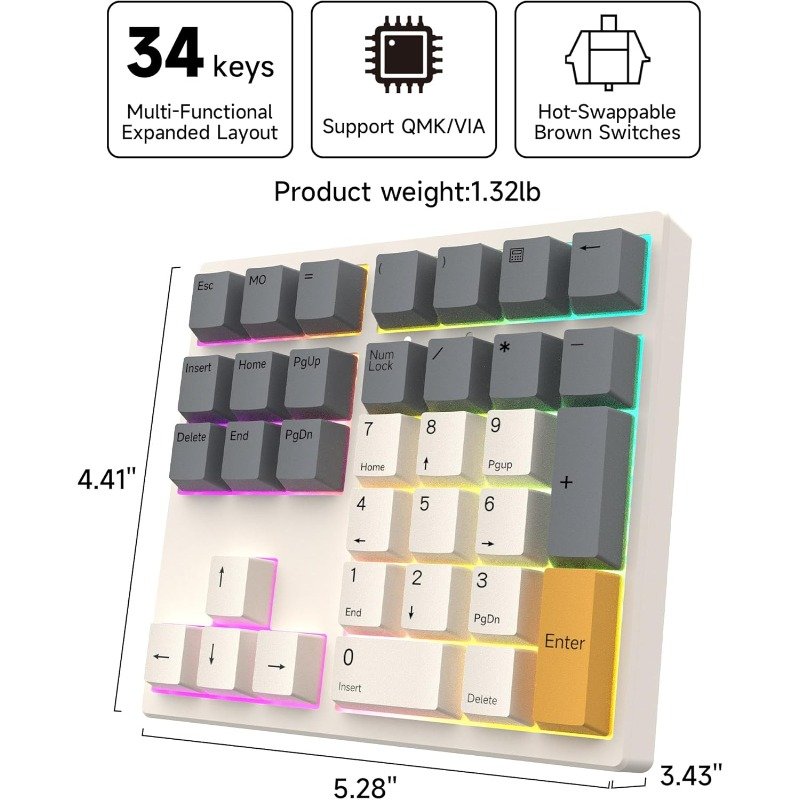 34 Key Mechanical Numpad Wired Hot Swappable Programmable Number Pad Keyboard USB C 34 Key Numpad for Laptop Edit PS Gaming Data Entry VIA Support Number Pad for Win MacBook PC RGB