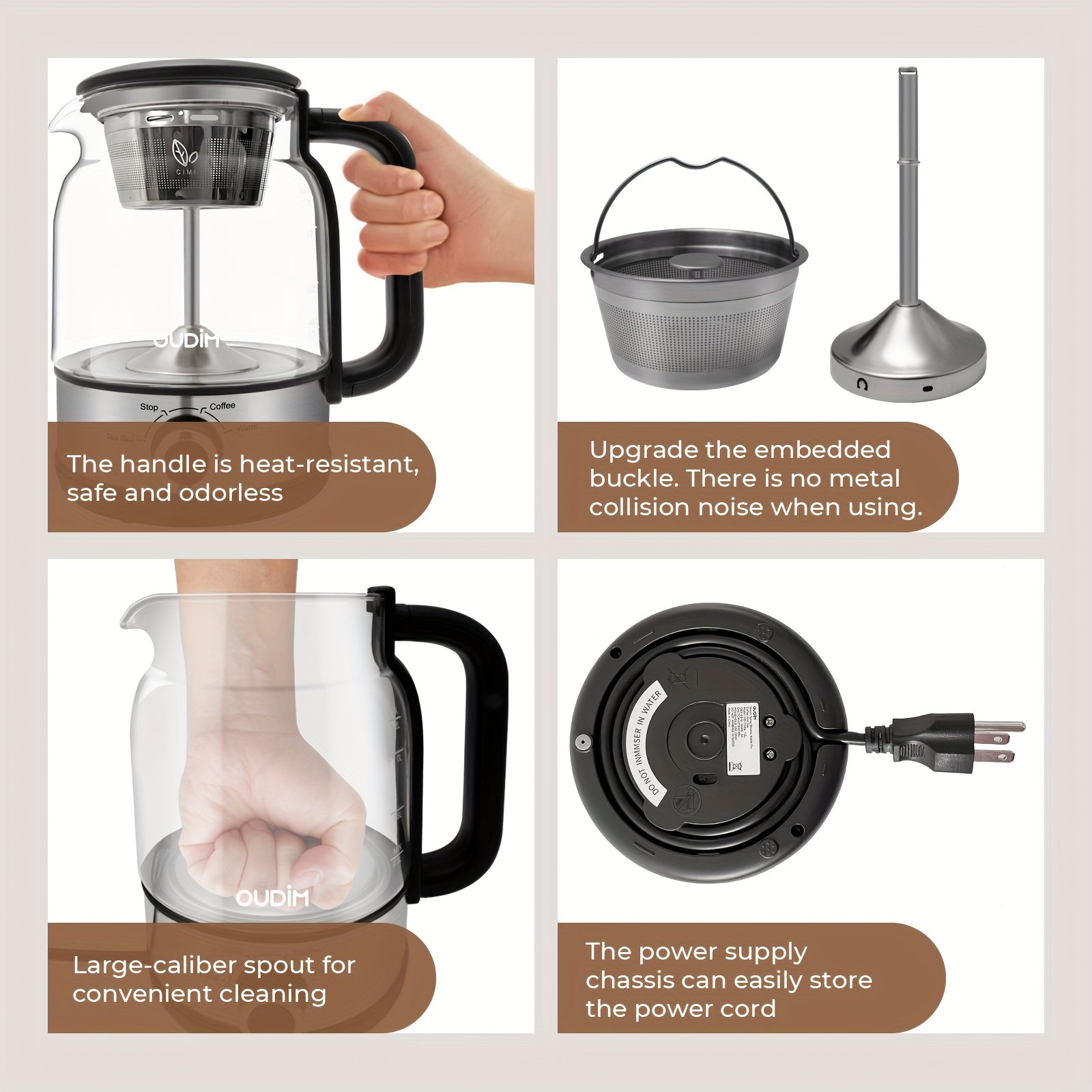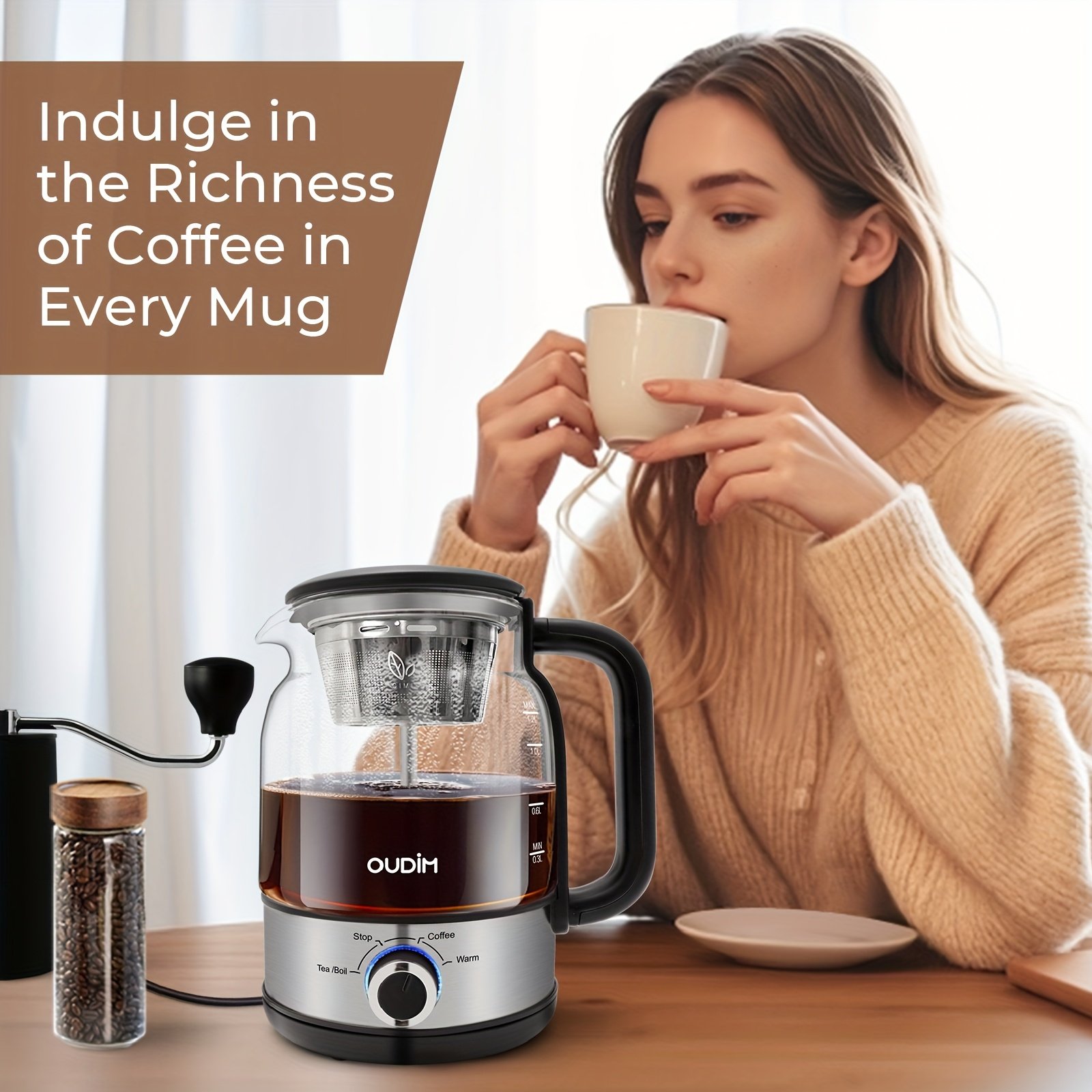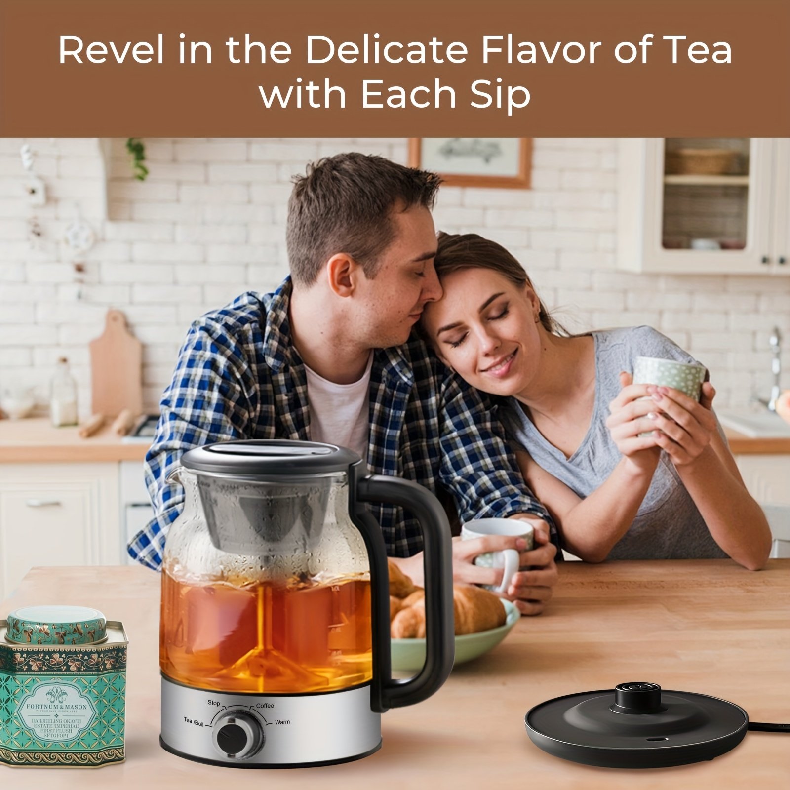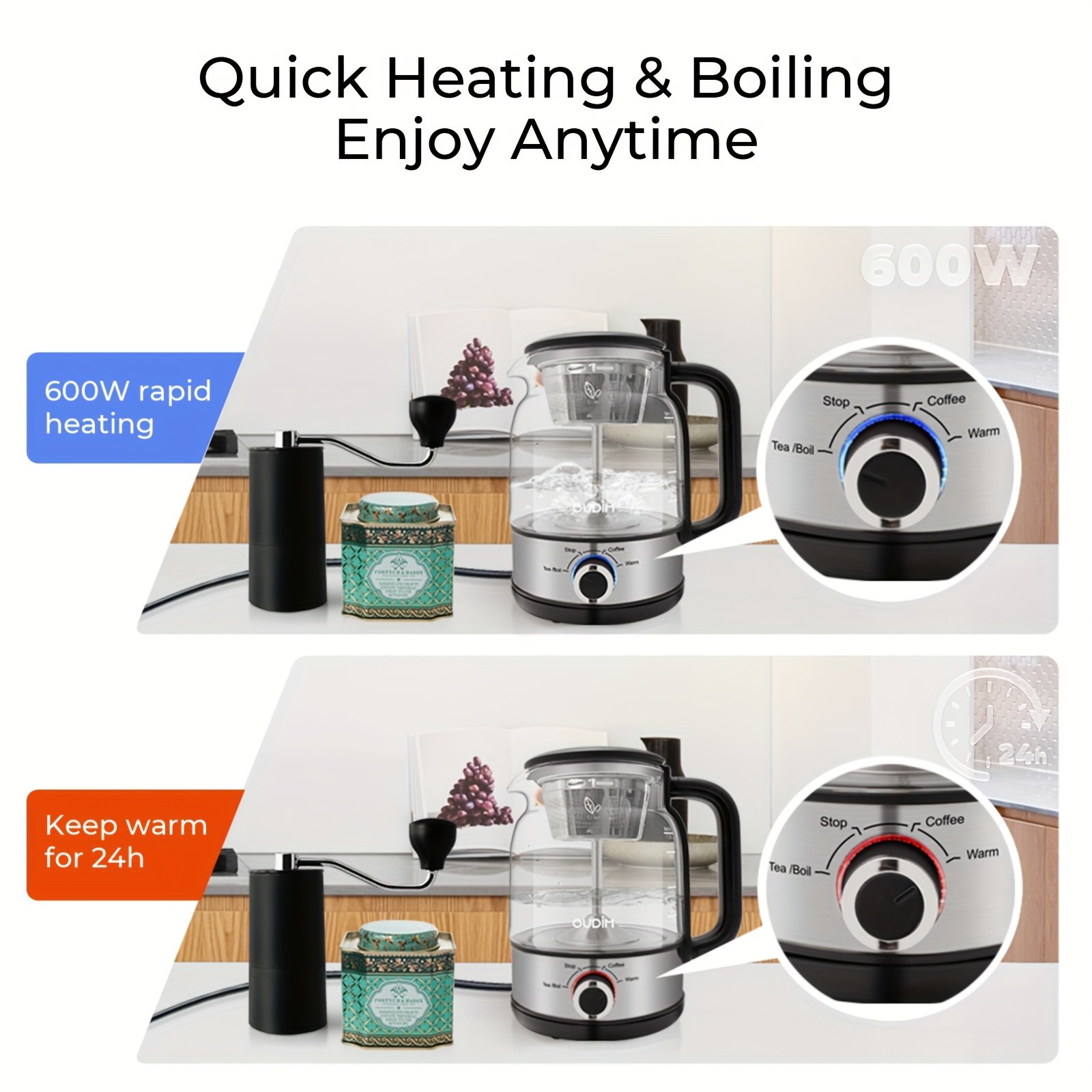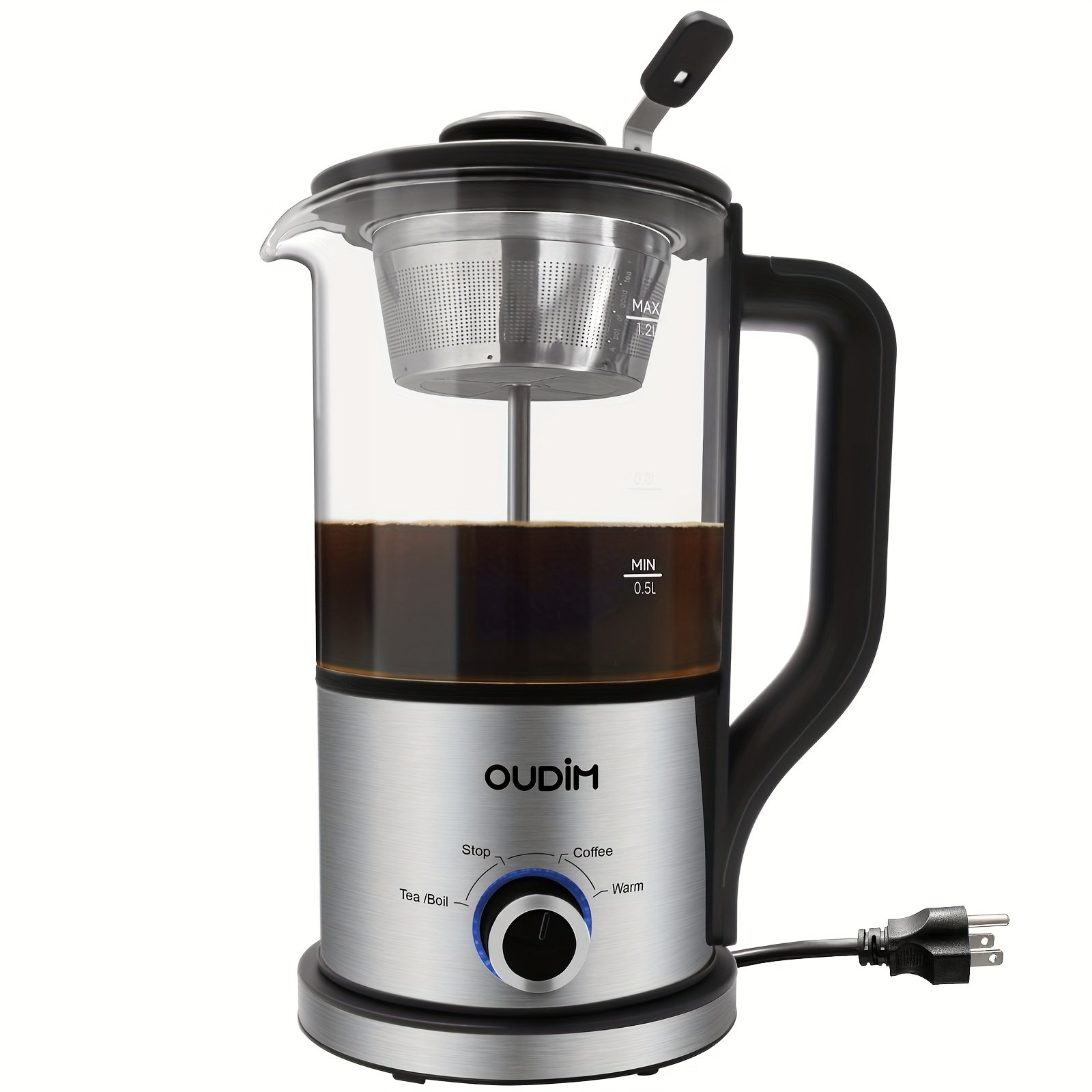 40.58oz Electric Coffee Maker&Tea Infuser-600W, BPA-Free Glass Stainless Steel Kettle, Heat Resistant Borosilicate, 304 Stainless Steel Heating Plate, Insulated Tea Maker, Coffee Pot, Kettle, Dry-burning Power-off Protection, HolidayEssentials, Gifts