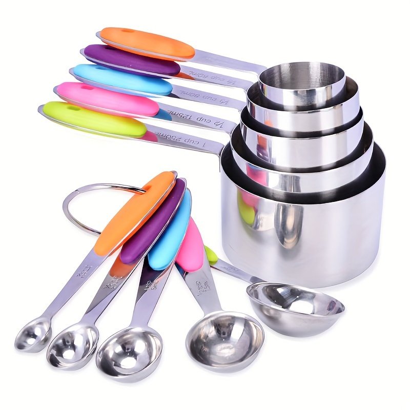 5/8/10/13pcs Stainless Steel Measuring Cups, Spoons and Spatulas Set - Thickened Silicone Handles, 8 Measuring Cups, 5 Measuring Spoons, Baking and Kitchen Cooking Utensils