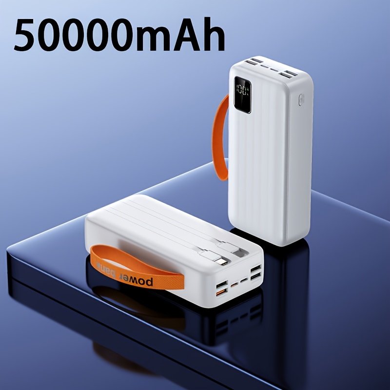 50000mAh Large Capacity Portable Power Bank with Built-in Data Cables/Lanyard/LED Display, Suitable for Various Mobile Phones/Electronics Quick Charging, Outdoor Travel Emergency Power Device, Safe and Stable Lithium Battery, Holiday Gift, Give to Relativ