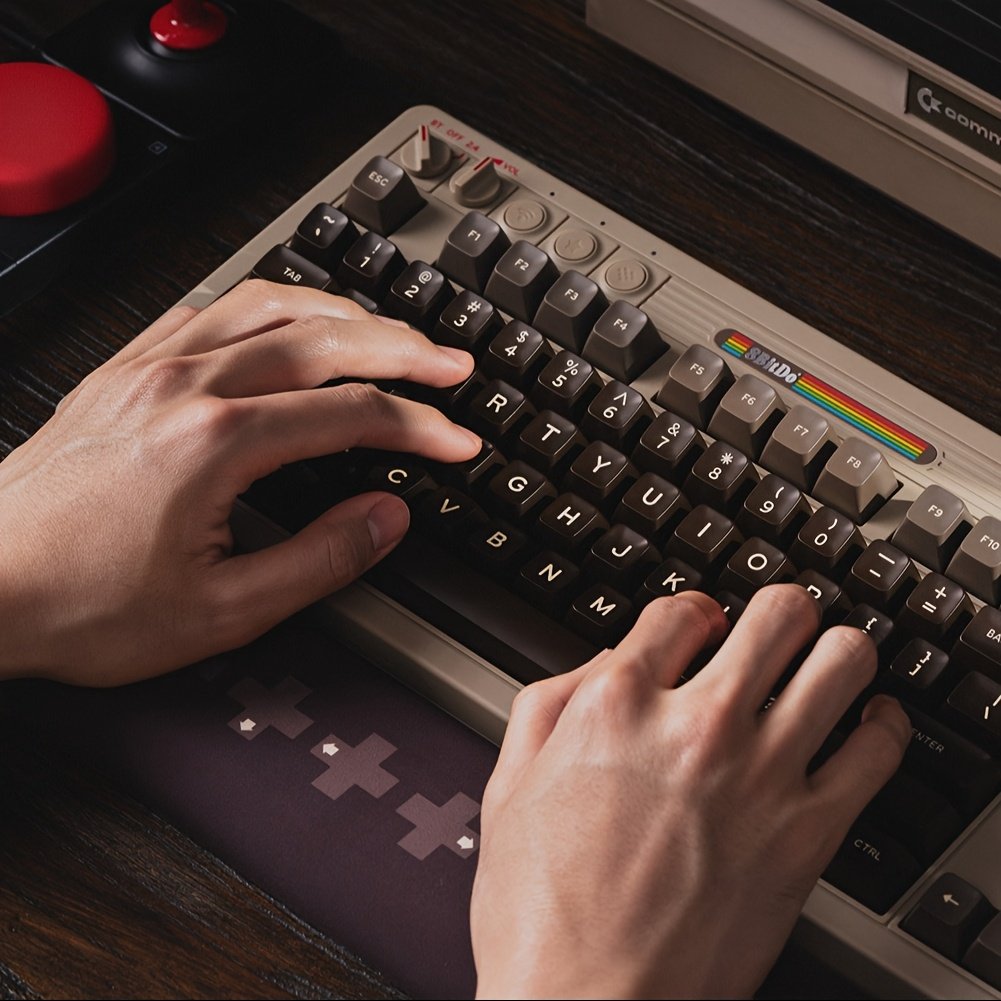 8BitDo Retro Mechanical Keyboard, BT/2.4G/USB-C Hot Swappable Gaming Keyboard With 87 Keys, Dual Super Buttons And Super Stick For Windows And Android – C64 Edition