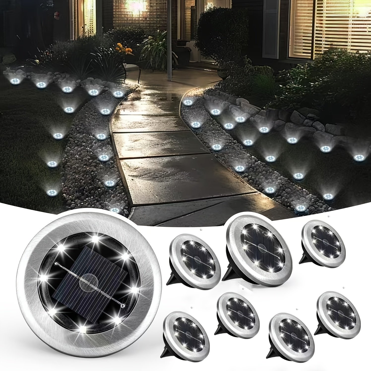 8pcs Of Outdoor Solar Buried Lights, 8 LED Buried Lights Solar Outdoor Lights IP44 Solar Garden Lights, Suitable for Path, Yard, Lawn, Driveway Buried Lights