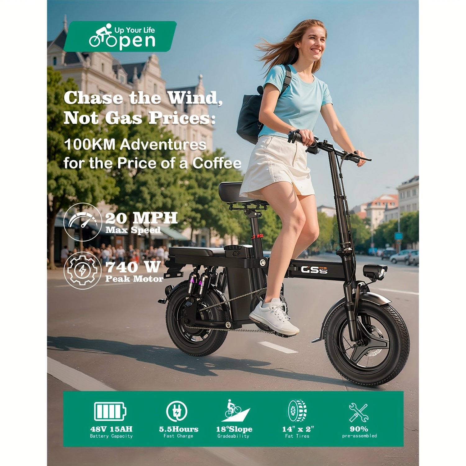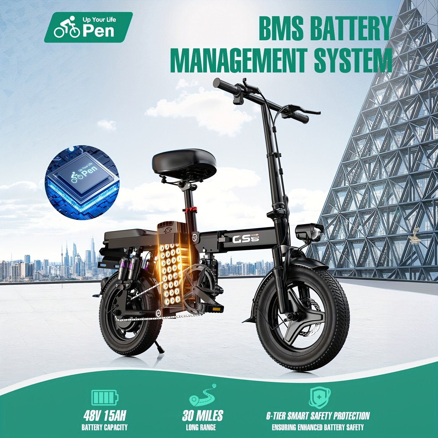 Adult Electric Bicycle with a 500W Motor, 14"e; Folding Ebike, Removable Battery with UL 2849 Certification, 45 Miles of Pedal Assist Range