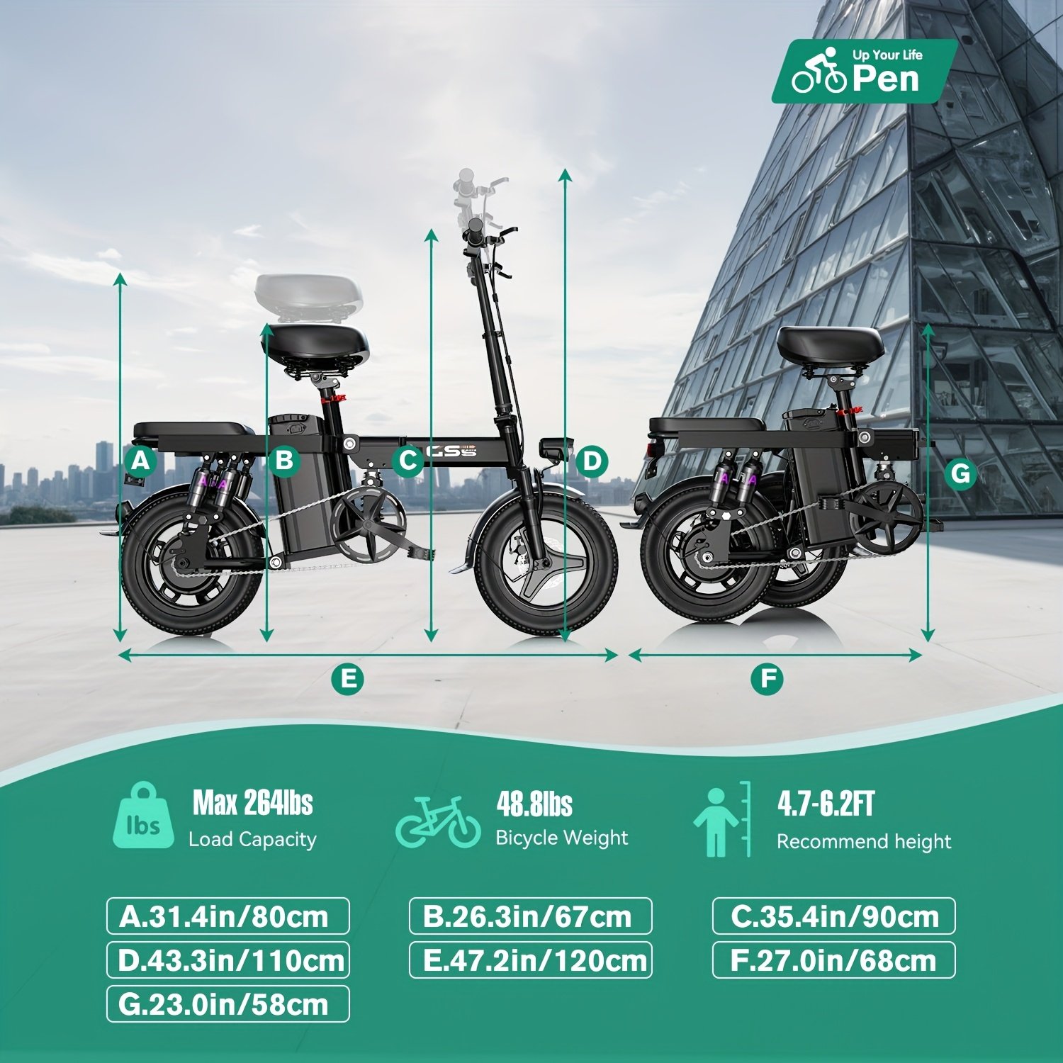 Adult Electric Bike with 740W Peak Motor, 720Wh Removable Battery, 20 MPH Max Speed & 45-Mile Range - Folding Step-Thru frame, Front Suspension, 14"e; All-Terrain Tire - PAS Activation, Heavy-Duty Alloy Steel Frame - for City, Trail, and Off-Road Riding - I