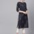Navy blue and off-white printed straight kurta, has a keyhole neck, three-quarter sleeves, straight hem, and side slits