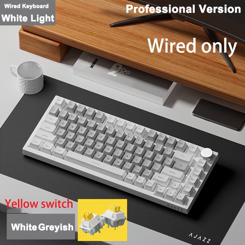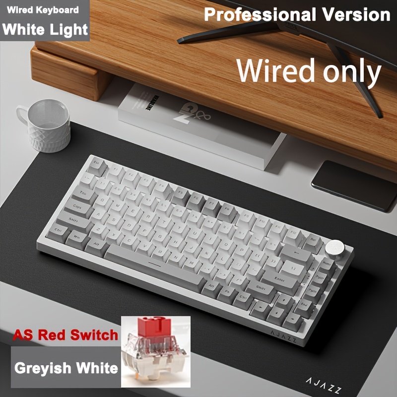 AJAZZ AK820 75% Layout Wired Mechanical Gaming Keyboard, with Volume Knob, Southward LED, PBT Keycaps, Programmable RGB, Ergonomic Design, Detachable USB-C Cable, including keycap puller - for two hands use; AK820
