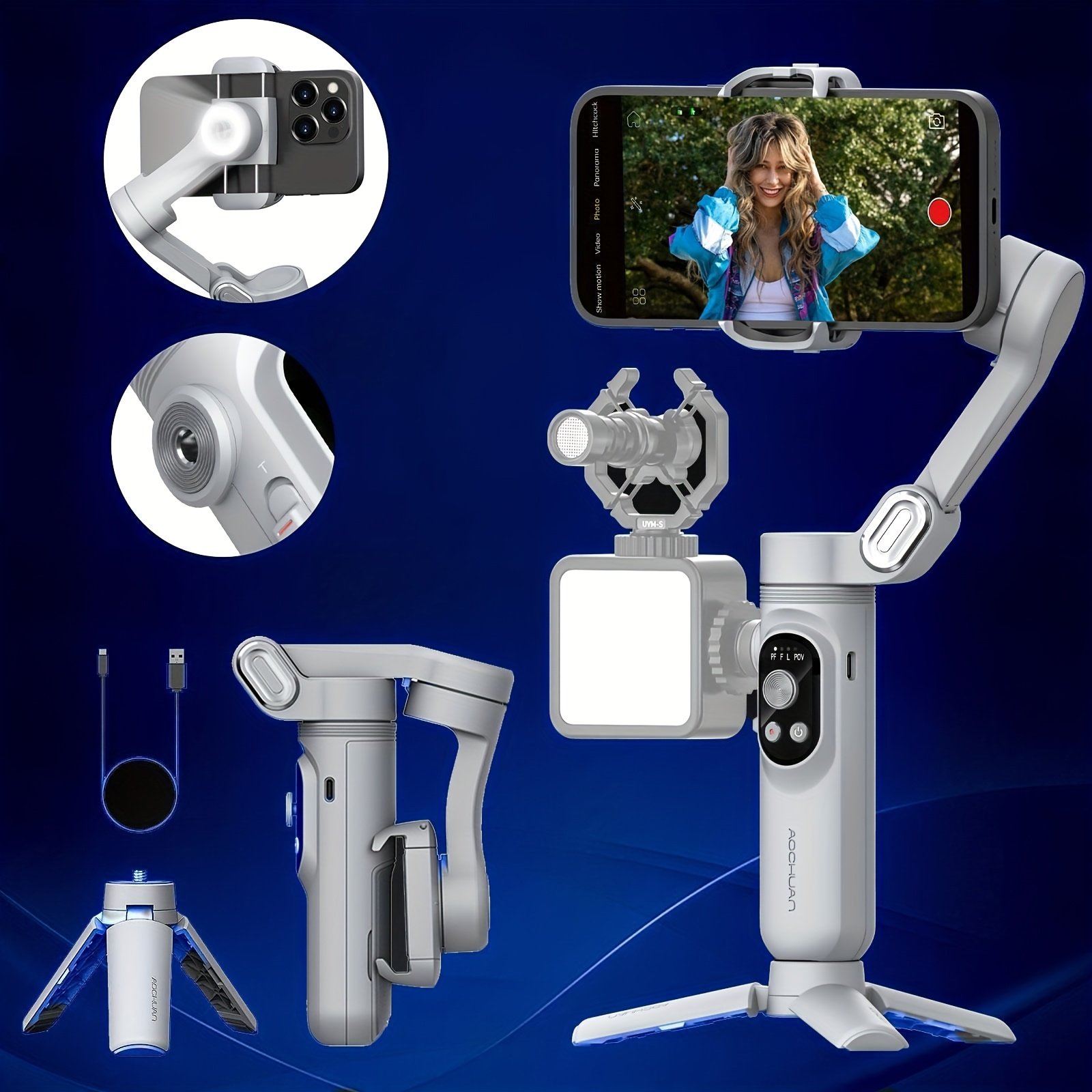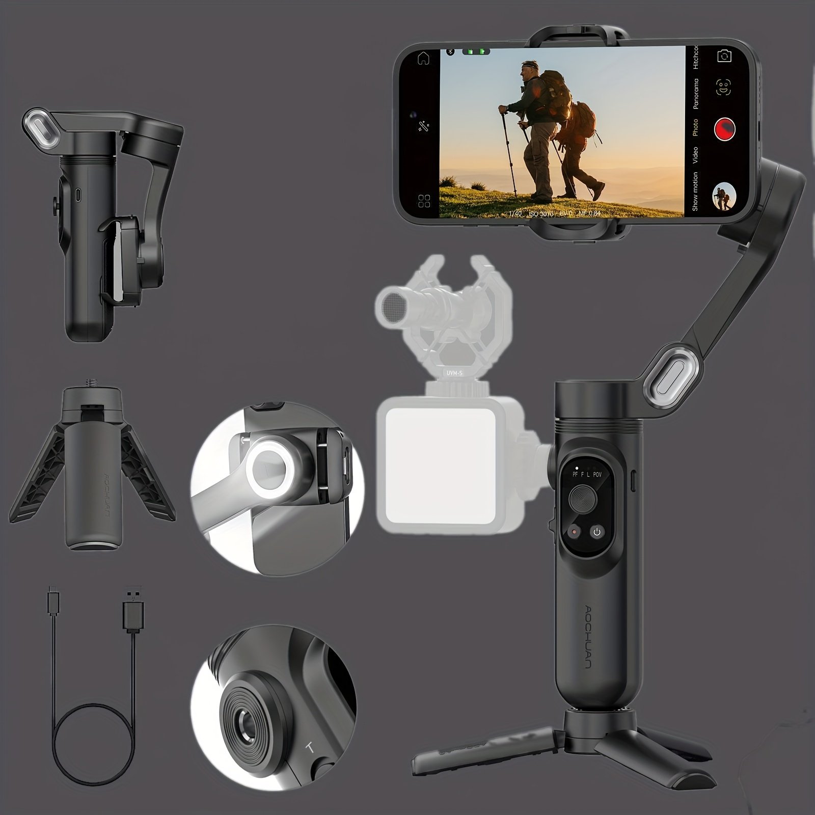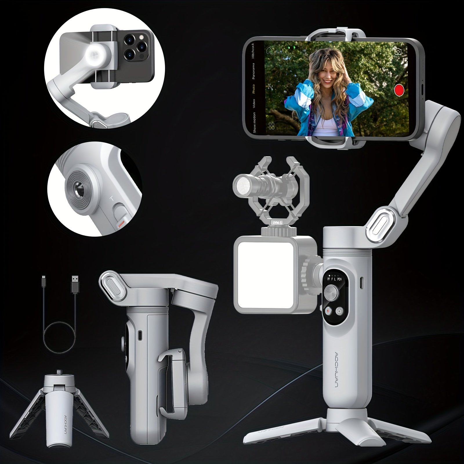 AOCHUAN Gimbal Stabilizer Mobile Phones 3-Axis Handheld Electric Foldable Ai Face Tracking Body Tracking Zoom Gesture Control Anti-Shake 360-Degree Rotation Recording/Video Creation Concert Travel Mountaineering Creative App Desktop Live Broadcast