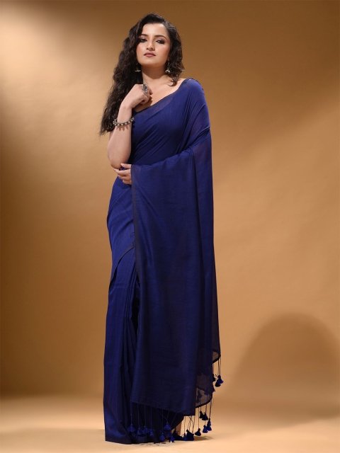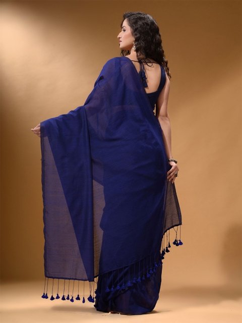 - Solid saree with no border
