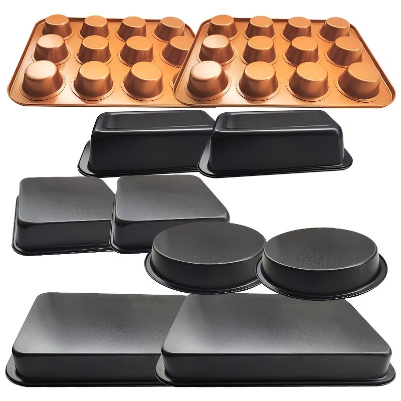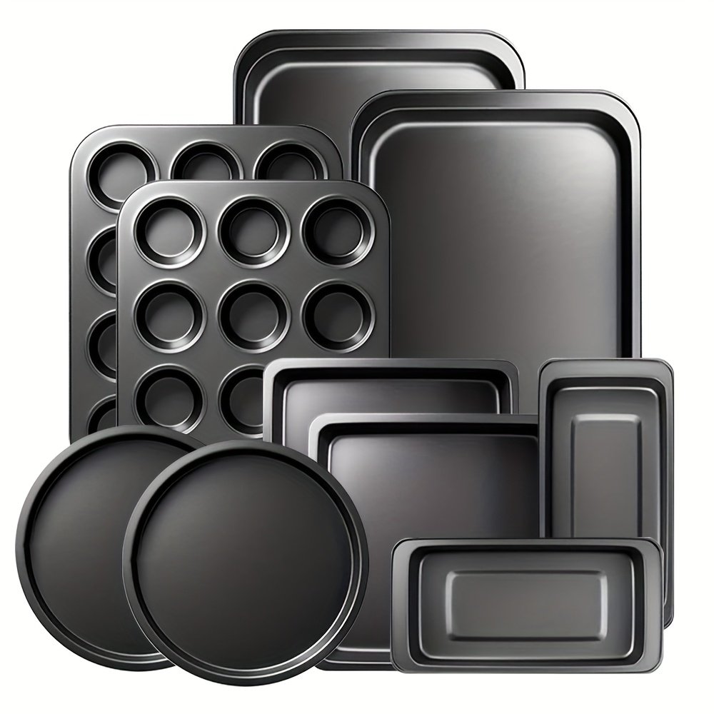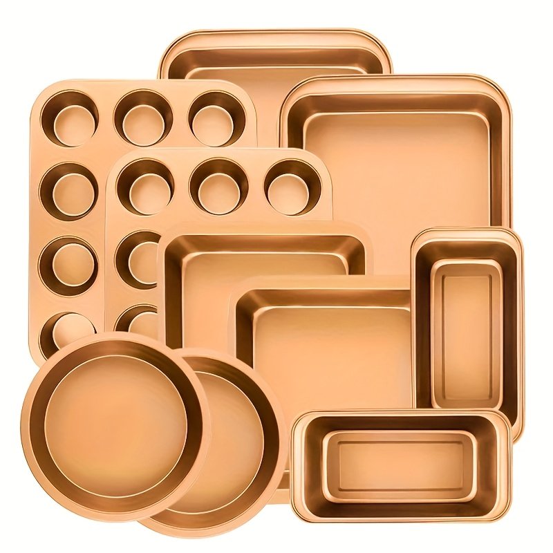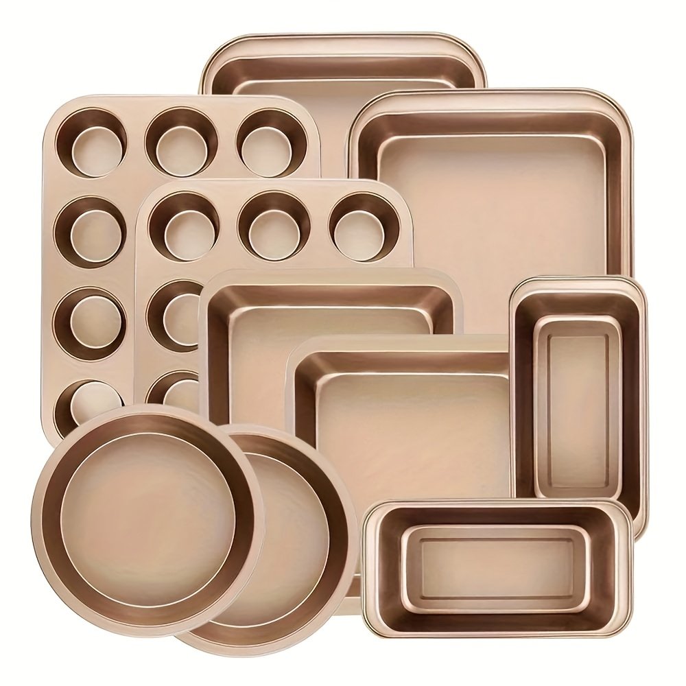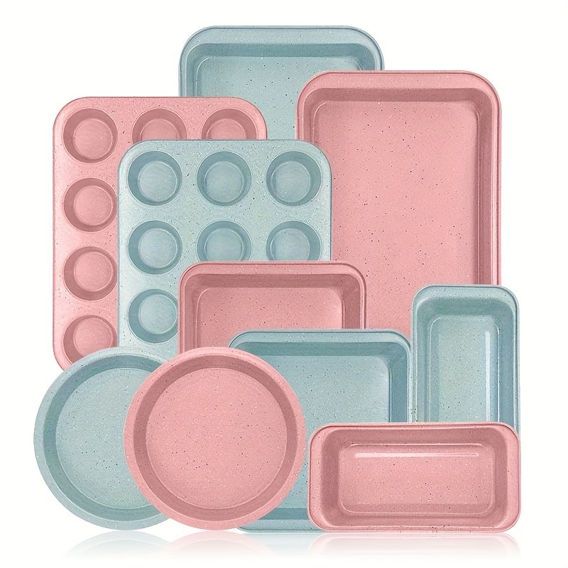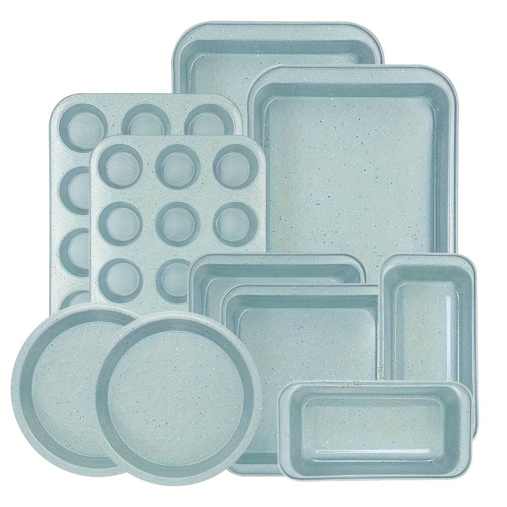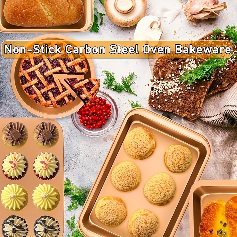 [Bakeware Set] 5/10pcs Two-tone Steel Stackable Bakeware Set/Baking Pans Set Nonstick with Oven Pans + Baking Sheet Set And Wire Rack, Complete Baking Set for Kitchen, Oven/Dishwasher Safe