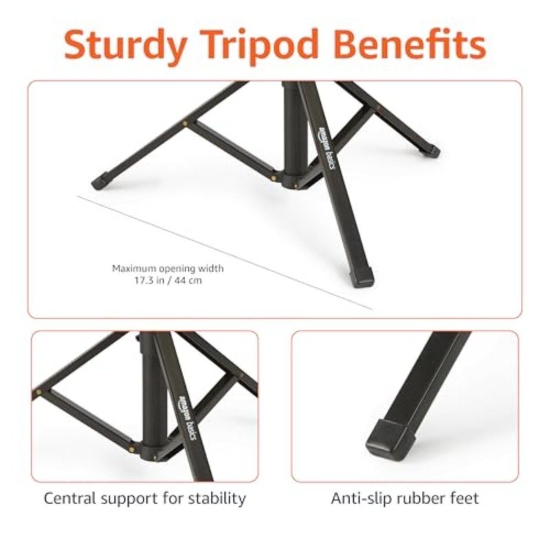 Basics Extendable Tripod for iPhone Selfie Stick & Phone Tripod - 64"e; Long 162cm Heavy-Duty 3-Section Adjustable Tripod with Smooth Extension, Ergonomic Handle & Compact Design for Vlogging, Live Streaming, Travel, Phone Tripod for Vlogging, Streaming,