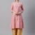 Pink and Silver ethnic embroidered straight kurta with sequinned detail, has a round neck, three-quarter sleeves, straight hem, and side slits