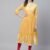 Yellow and Silver yoke design A-line kurta as a layer with ruffled and gathered detail, has a round neck, three-quarter sleeves, flounced hem, front slit and hook and eye closure