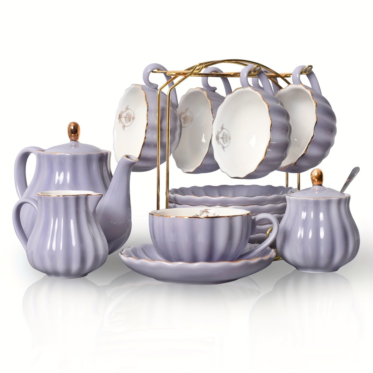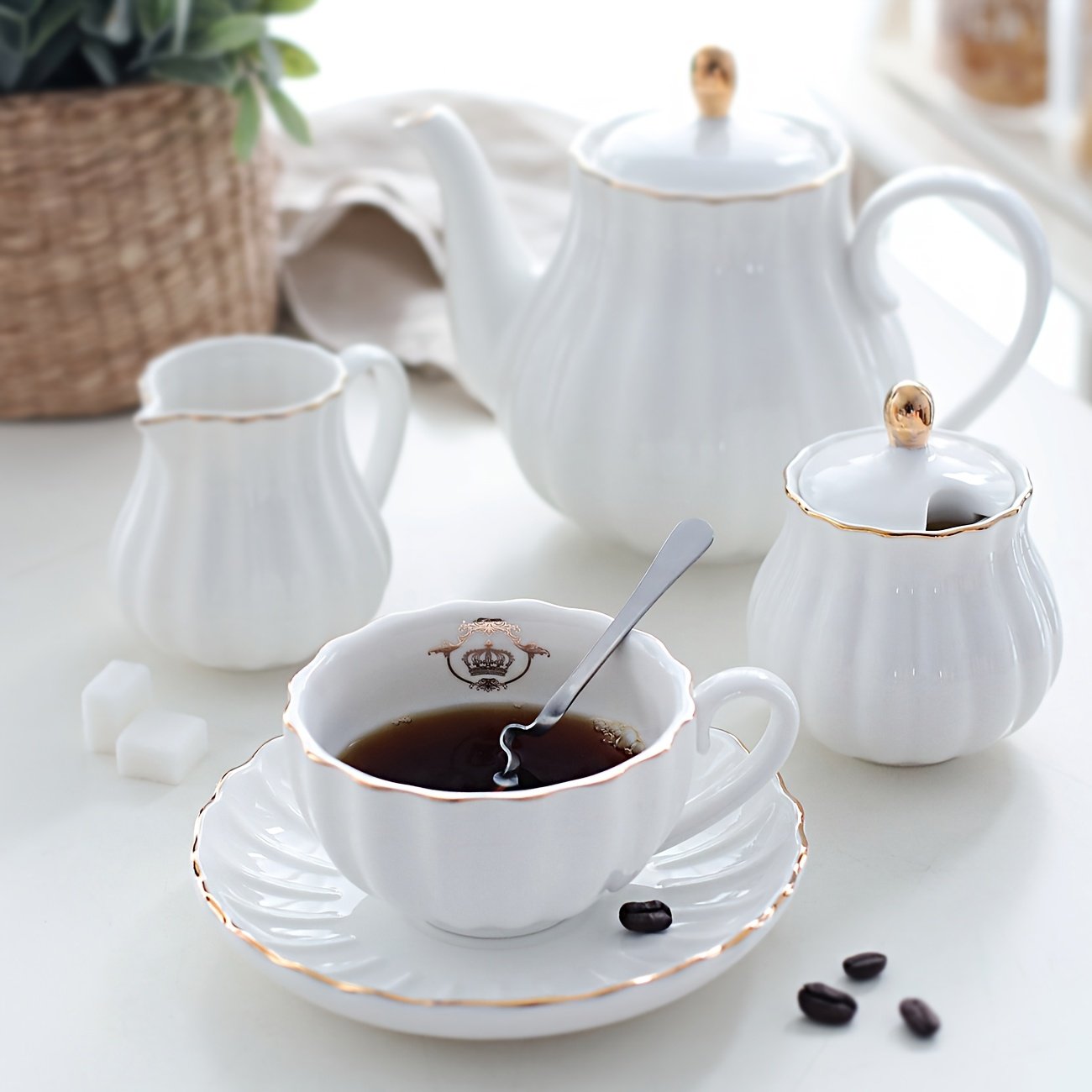 [Ceramic Tea Set] 21pcs Porcelain Ceramic Tea Set, Teapot And Cup Set, 8 Ounces, for 6 | Gift Sets, Tea Or Coffee Lovers, Wedding, Birthday
