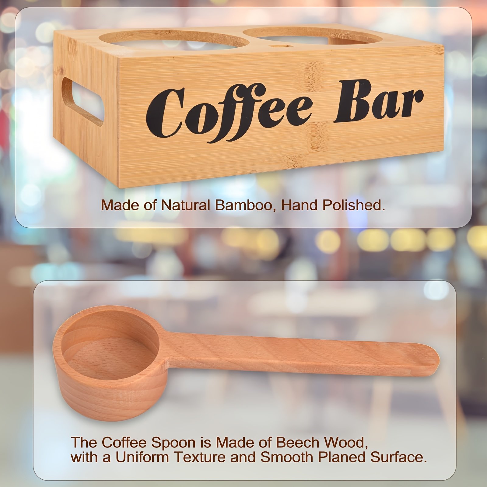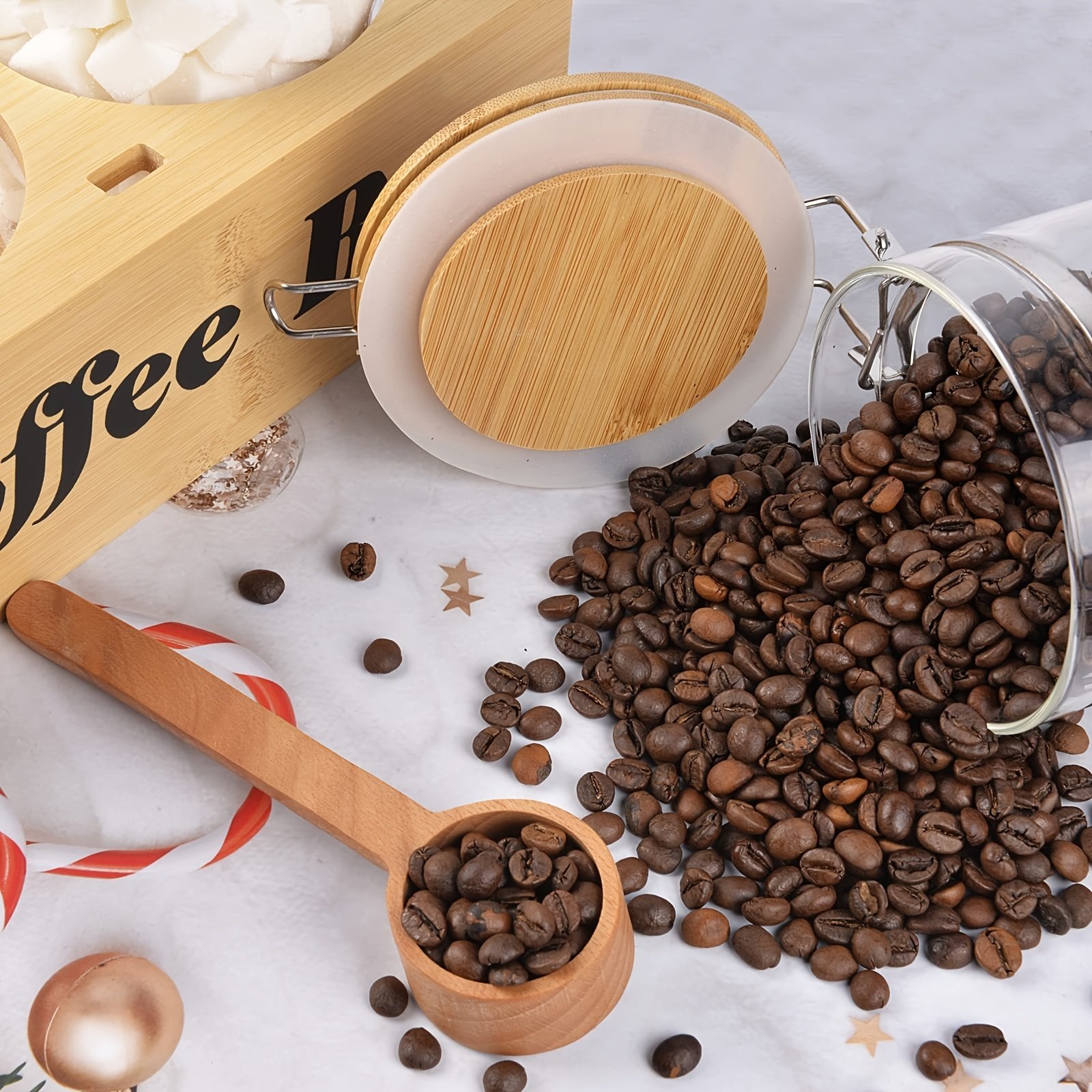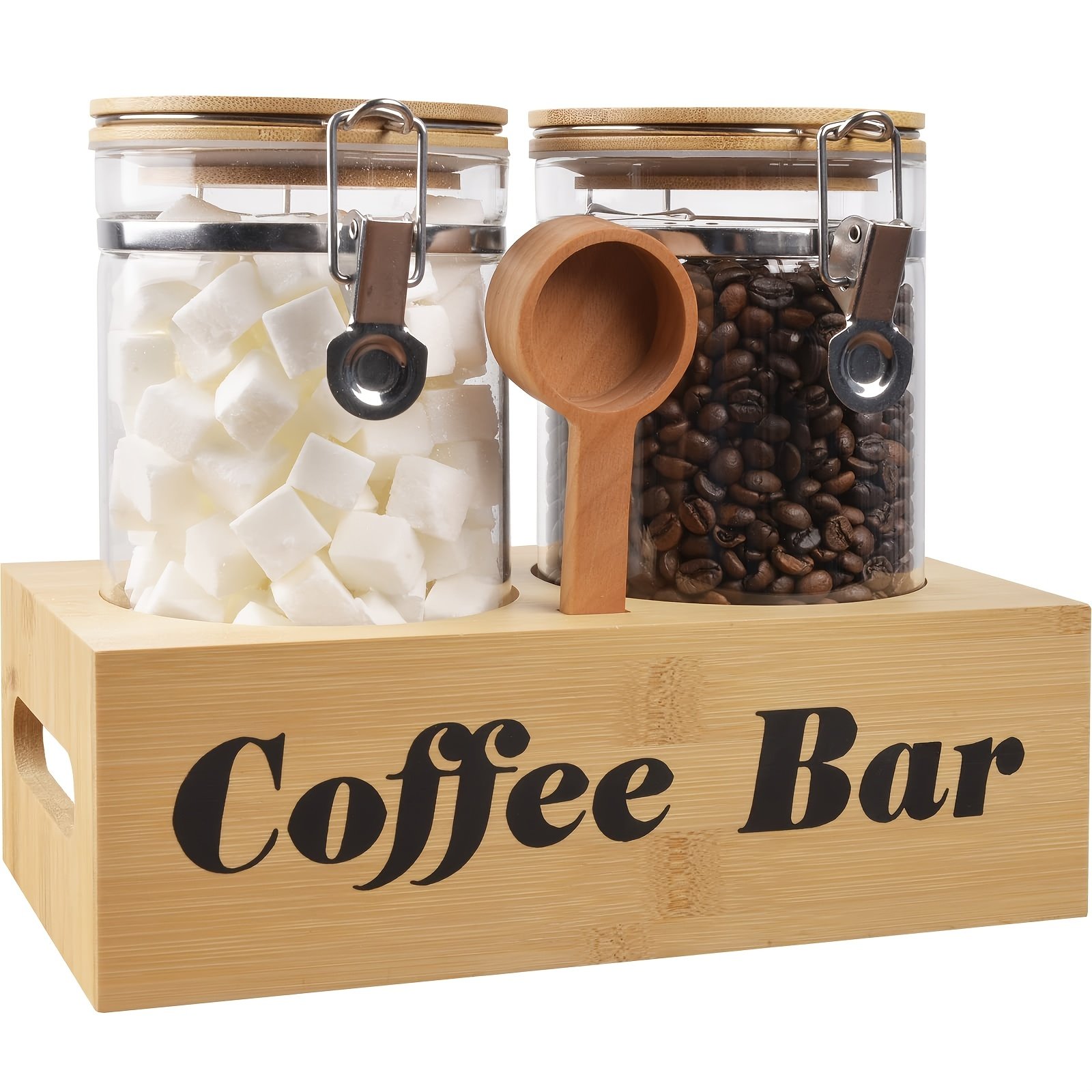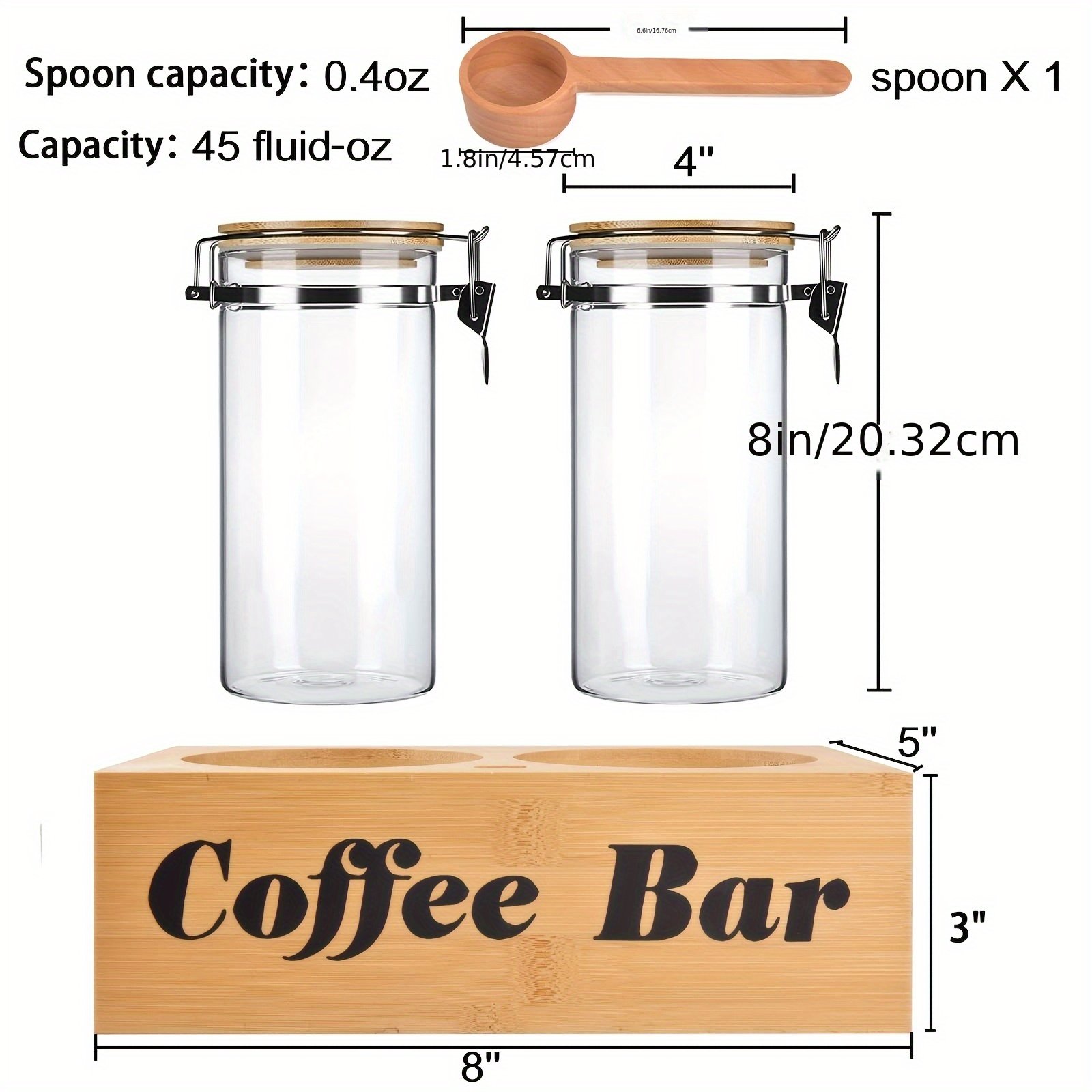 ChezMax 2pcs Glass Coffee Canister With Shelf Printed Coffee Bar For Ground Coffee, 45oz Glass Coffee Bean Storage Jars With Airtight Locking Clamp Lids Spoons, Coffee Containers Set Kitchen Food Storage Tea Sugar