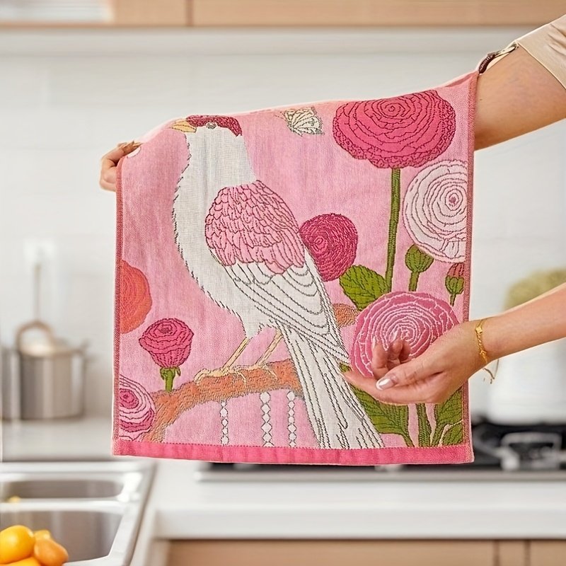 [Colorful Hand Towel] 100% Polyester Modern Colorful Bird & Floral Geometric Pattern Hand Towel | 350gsm, Absorbent Non-Shedding, Multi-Use for Kitchen, Bathroom, Dish Drying – Thanksgiving Home Decor