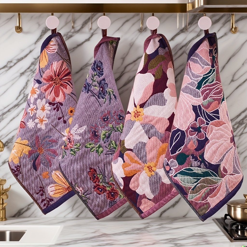 [Colorful Hand Towel] 100% Polyester Modern Colorful Bird & Floral Geometric Pattern Hand Towel | 350gsm, Absorbent Non-Shedding, Multi-Use for Kitchen, Bathroom, Dish Drying - Thanksgiving Home Decor