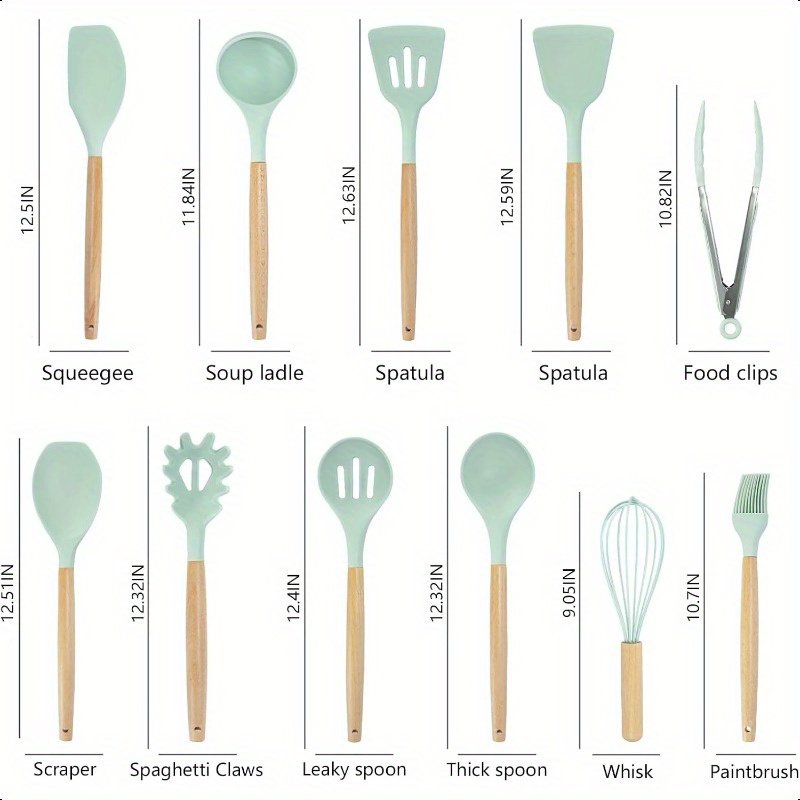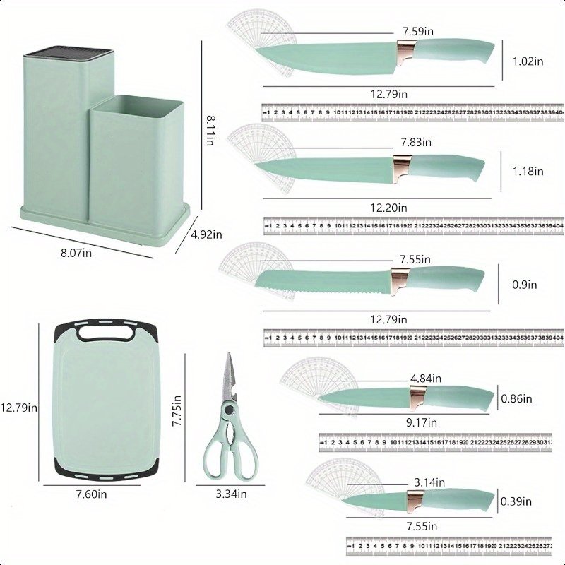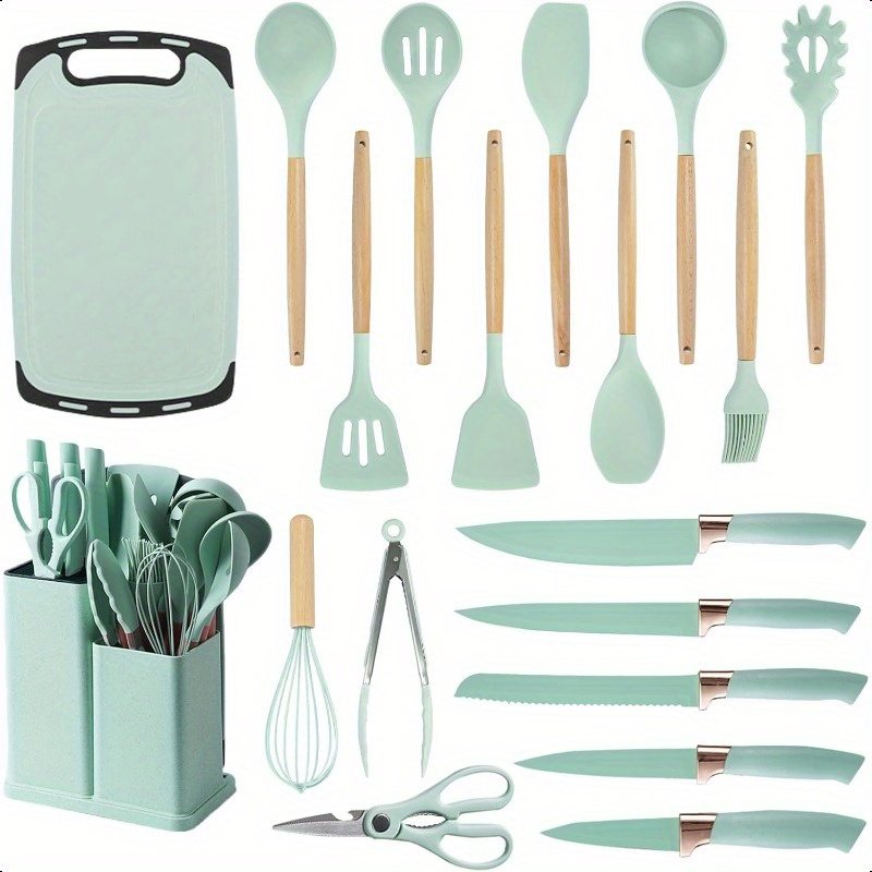 Cooking Utensils Set19 Kitchen Set Utensils Set with 11pcs Spatula Cooking Utensils Heat Resistant Silicone Utensils 6pcs Sharp Knife Set 2pcs Utensil Cutting Board Green 19pcs Set