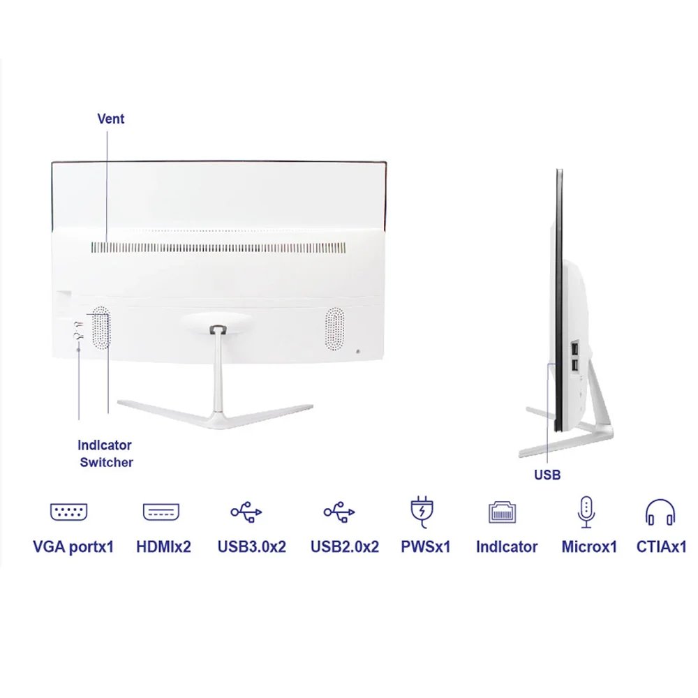 Desktop Computer 21.5 24 Inch Core I3 I5 I7 I9 Gaming Full Setup All in One PC DDR4 Gaming Desktop Computer