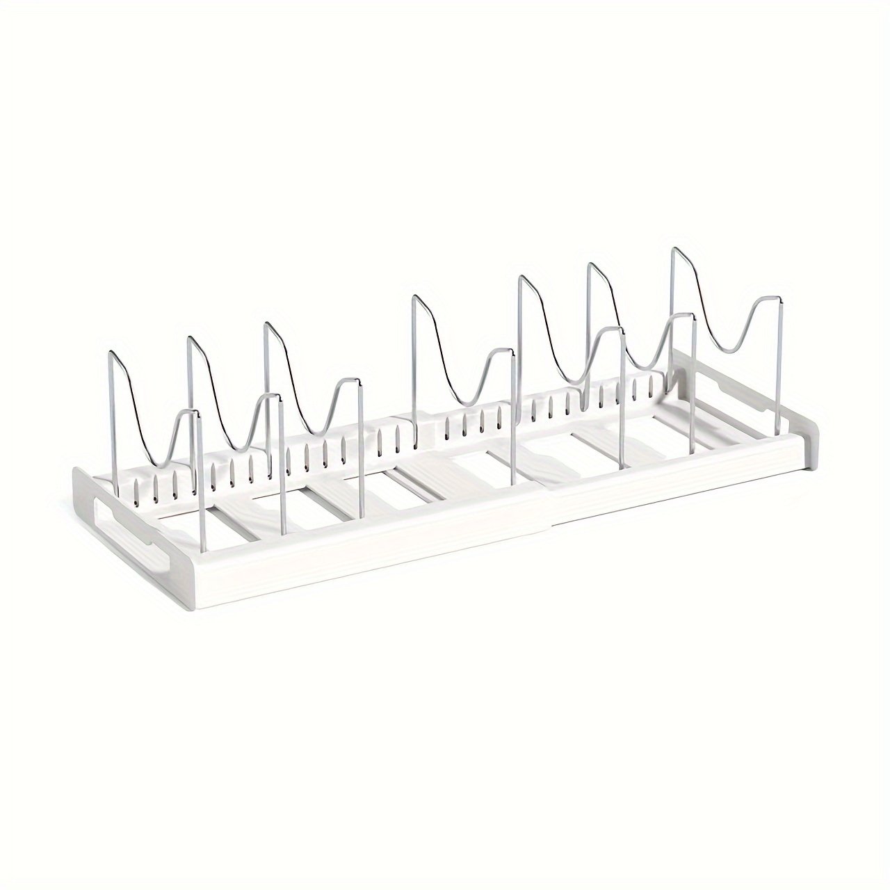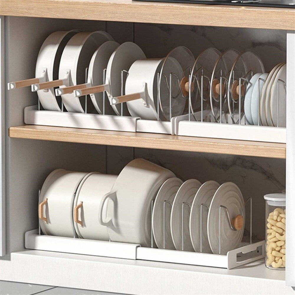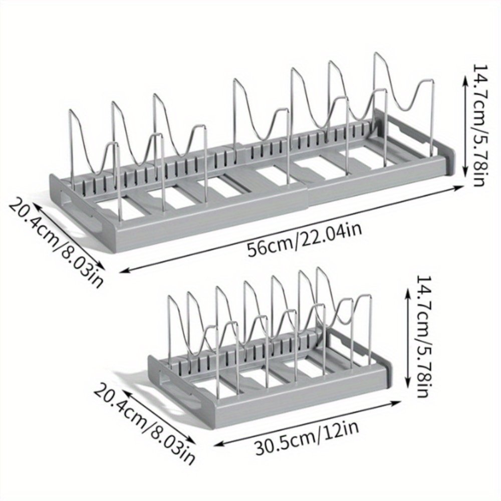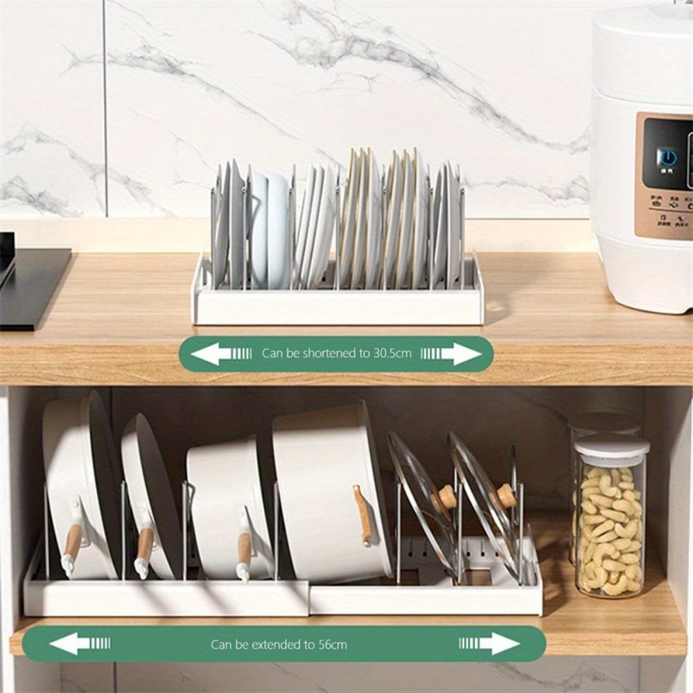 Expandable Kitchen Organizer - Sliding Cabinet & Countertop Storage Rack for Pots, Lids & Utensils - Durable ABS Material