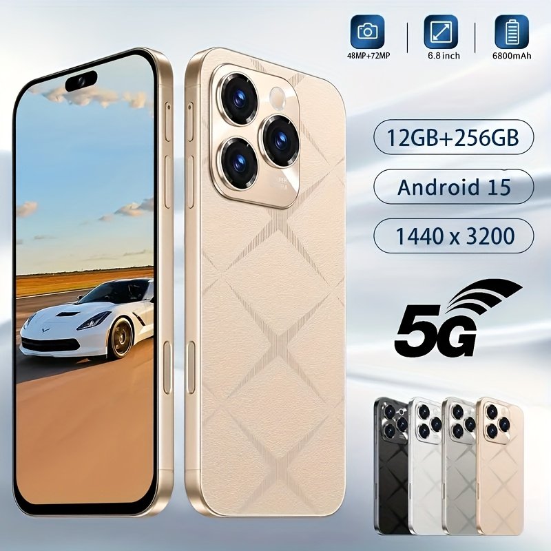 Fashionable 5G Smartphone Dual-SIM Unlocked Version, Equipped with 12GB RAM, 256GB Storage Space, Running Android 15 System, Featuring A 6.8-inch High-definition Display, Equipped with A 6800mAh Large-capacity Battery, Rear 48-megapixel + 72-megapixel Dua