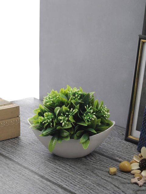 FOLIYAJ Green & White Artificial Plant With Pot