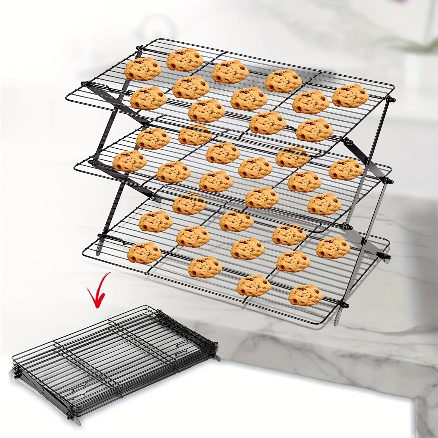 Four-layer Foldable Cooling Rack With Baking Tool Set - Stackable Oven Cookie Cake Drying Rack. BBQ Grill Mesh Tray For Camping, Kitchen Storage & Holiday Baking Gifts Includes Silicone Spatula, Whisk, Tongs, Basting Brush