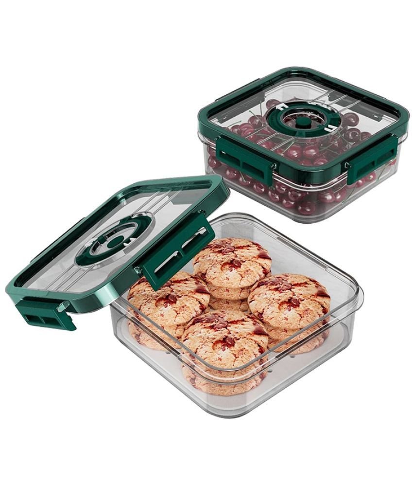 HOMETALES Polycarbonate Green Food Container ( Set of 2 )