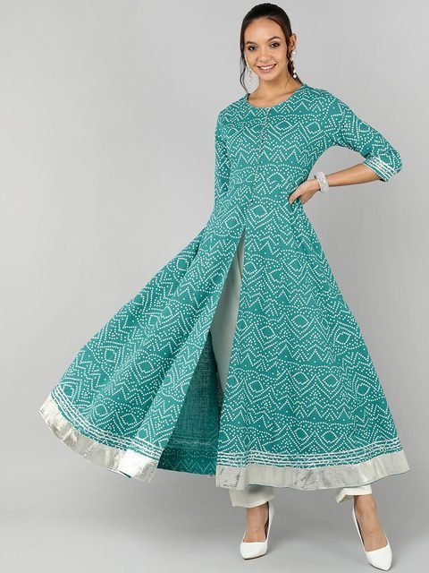 Jaipur Folk Women Blue Geometric Printed Kurta