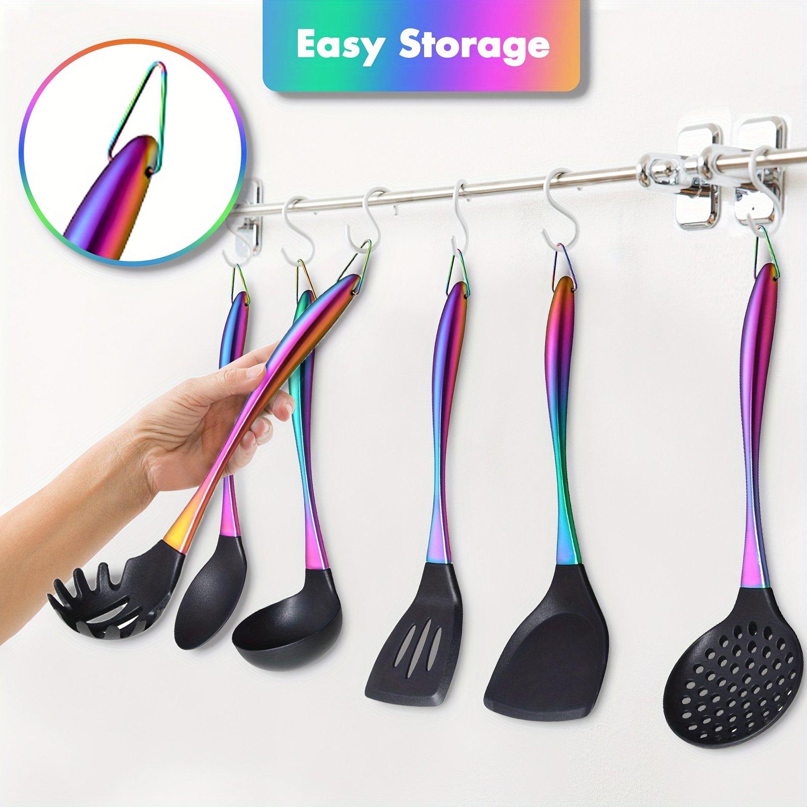 Kitchen Utensils Set-17pcs Titanium Rainbow Silicone Spatula, Silicone Cooking Utensils Set with Holder, Heat Resistant Silicone Utensils for Cooking, Non-stick Spatula Set, Ladle with Stainless Steel Handle, Skimmer