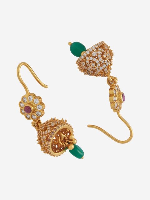 Kushal's Fashion Jewellery Embellished Bridal 92.5 Silver Gold-Plated CZ Dome Jhumkas