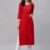 Red embroidered straight kurta, has a round neck, three-quarter sleeves, straight hem, and side slits
