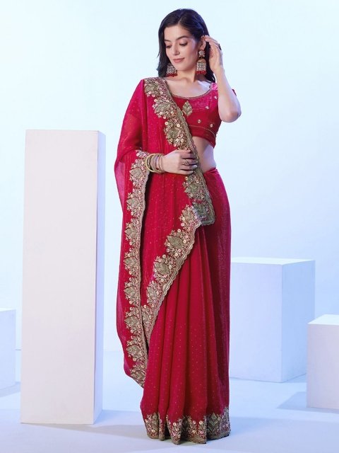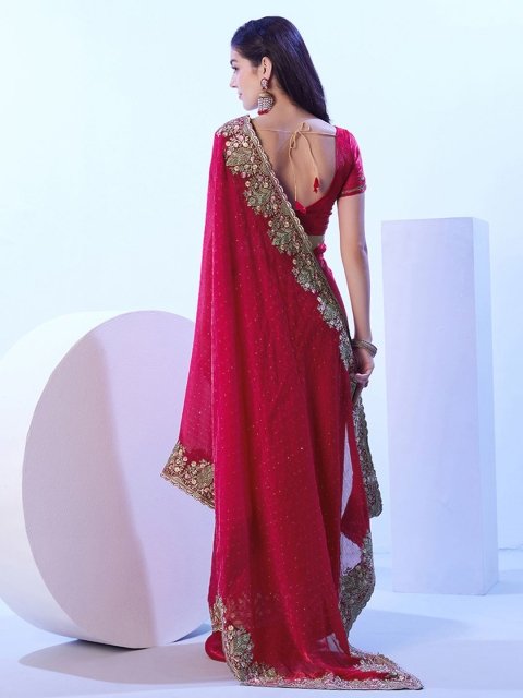 The blouse worn by the model might be for modelling purpose only. Check the image of the blouse piece to understand how the actual blouse piece looks like.