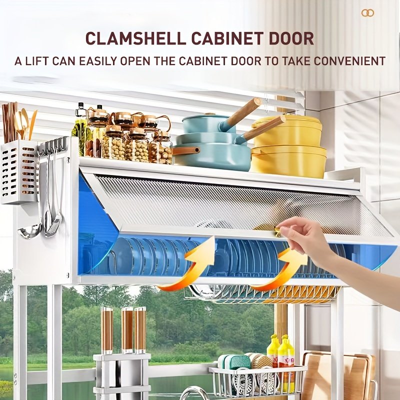Multi-Functional Kitchen Storage Rack with Cabinet Door Access – Black Metal Countertop Organizer for Dishes, Utensils, and Cookware with Drain Tray, Towel Holder, and Spice Shelf, Sink Storage Solution|Functional Kitchen Accessory|Black Metal Constructio