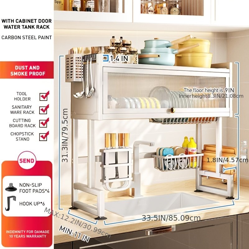 Be the first to review “Multi-Functional Kitchen Storage Rack with Cabinet Door Access – Black Metal Countertop Organizer for Dishes, Utensils, and Cookware with Drain Tray, Towel Holder, and Spice Shelf, Sink Storage Solution|Functional Kitchen Accessory|Black Metal Constructio”