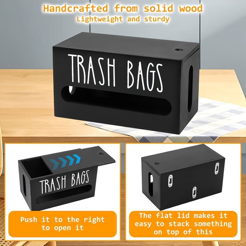 Multi-Functional Wooden Trash Bag Dispenser with Easy Installation - Space-Saving Kitchen Organizer for Grocery Bags, Tissues & Essentials - Waterproof, Flip-Top Design, Perfect for Christmas & Valentine's Gifts, Grocery Storage | Visible Labeling | Woode
