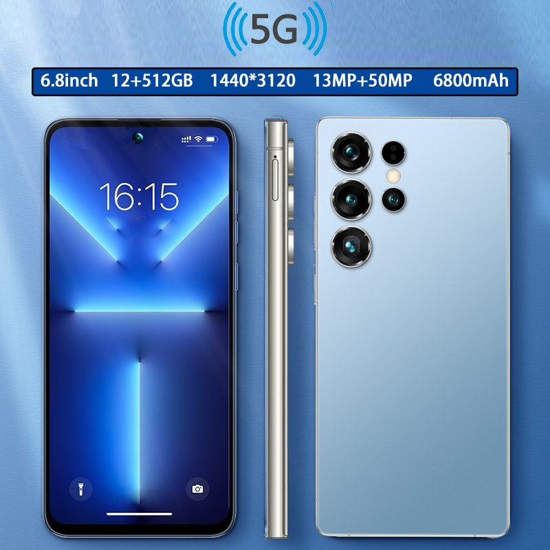 [New 5G Smartphone] 2025 New 5G Android Smartphone 12GB+512GB | 6.8-Inch HD Display, 13MP+50MP HD Camera, 6800 Mah, Dual-Stop, 1440*3120 Resolution, Built-In Pen, Facial Recognition Unlock, WIFI, GPS, Type-C Charging Cable, Metal Body, with Protective Cov